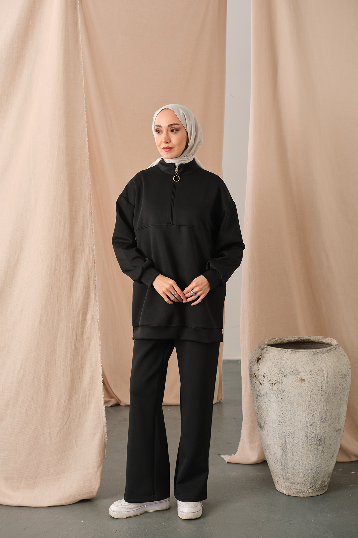 Kadın Yarım Fermuarlı Takım Siyah Kadın Yarım Fermuarlı Takım Siyah 182-220 L/XL