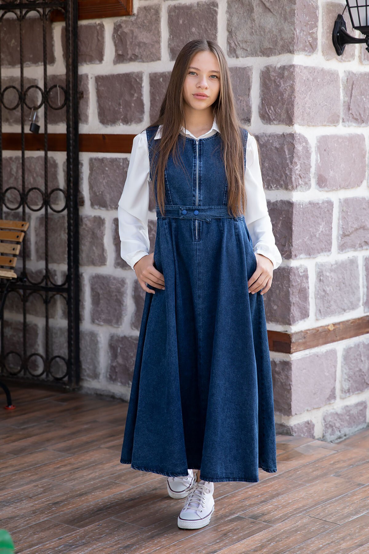 Mavi Önü Fermuarlı Klasik Gömlekli Kız Çocuk Kuşaklı Jean Elbise 22737 Mavi Önü Fermuarlı Klasik Gömlekli Kız Çocuk Kuşaklı Jean Elbise 22737 GRPCM00022737 15-16 Yaş