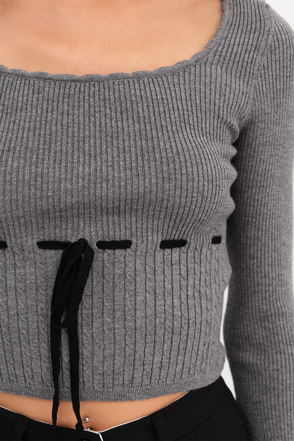 U Yaka Bağcıklı Kazak K10326 U Yaka Bağcıklı Kazak K10326 ADX-00036112 Standart