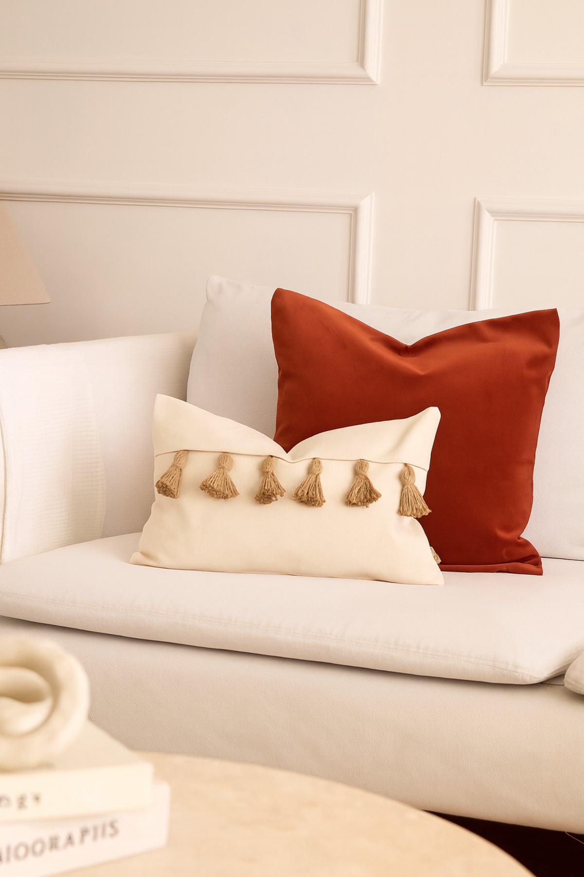2'Li Set Kiremit Rengi ve Krem Püsküllü Kırlent Kılıfı 2'Li Set Kiremit Rengi ve Krem Püsküllü Kırlent Kılıfı 1088 50 x 50