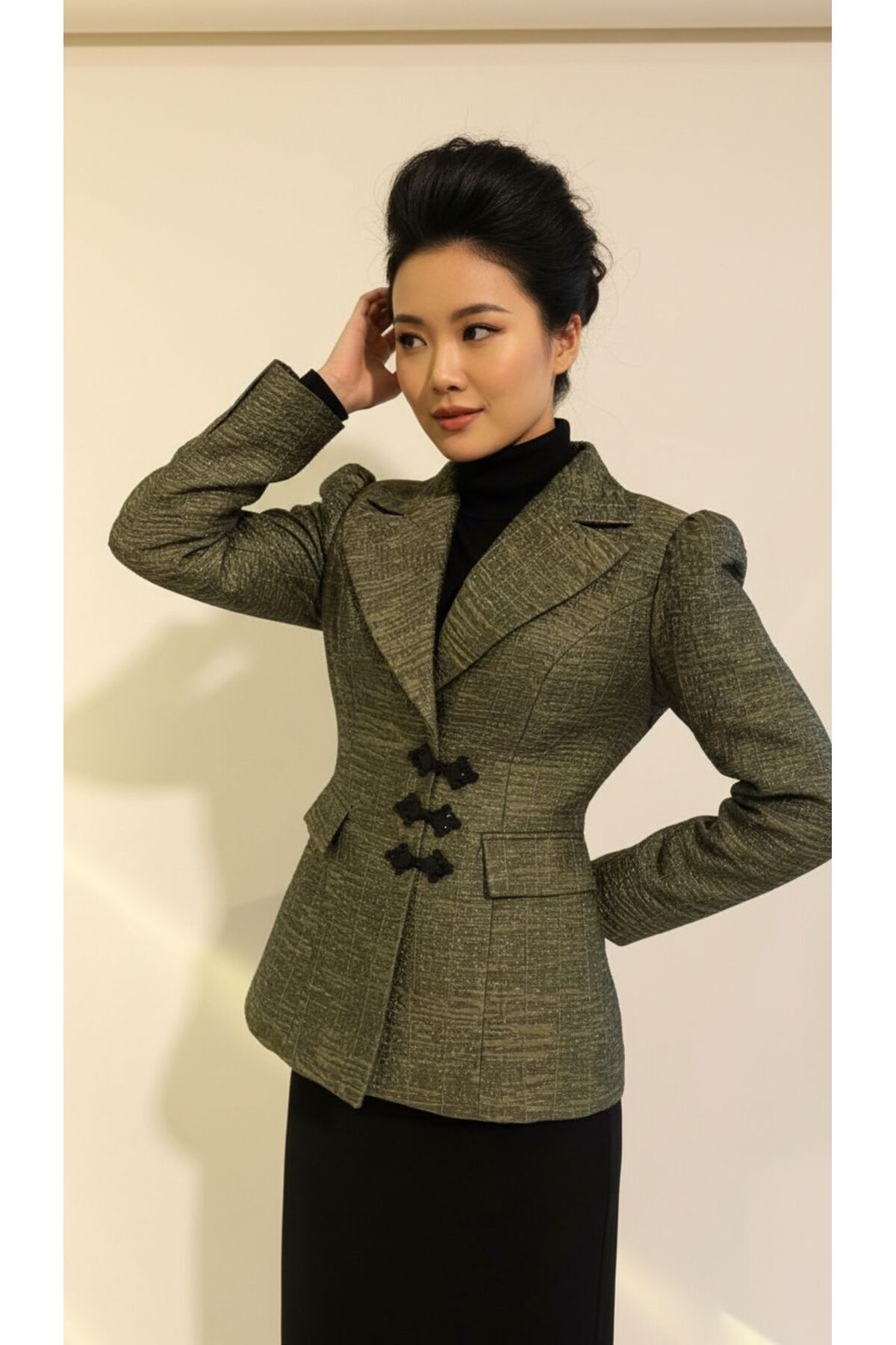 Kadın Yeşil Kruvaze Düğmeli Slim Fit Blazer Ceket Kadın Yeşil Kruvaze Düğmeli Slim Fit Blazer Ceket HV-BLAZER-001 L