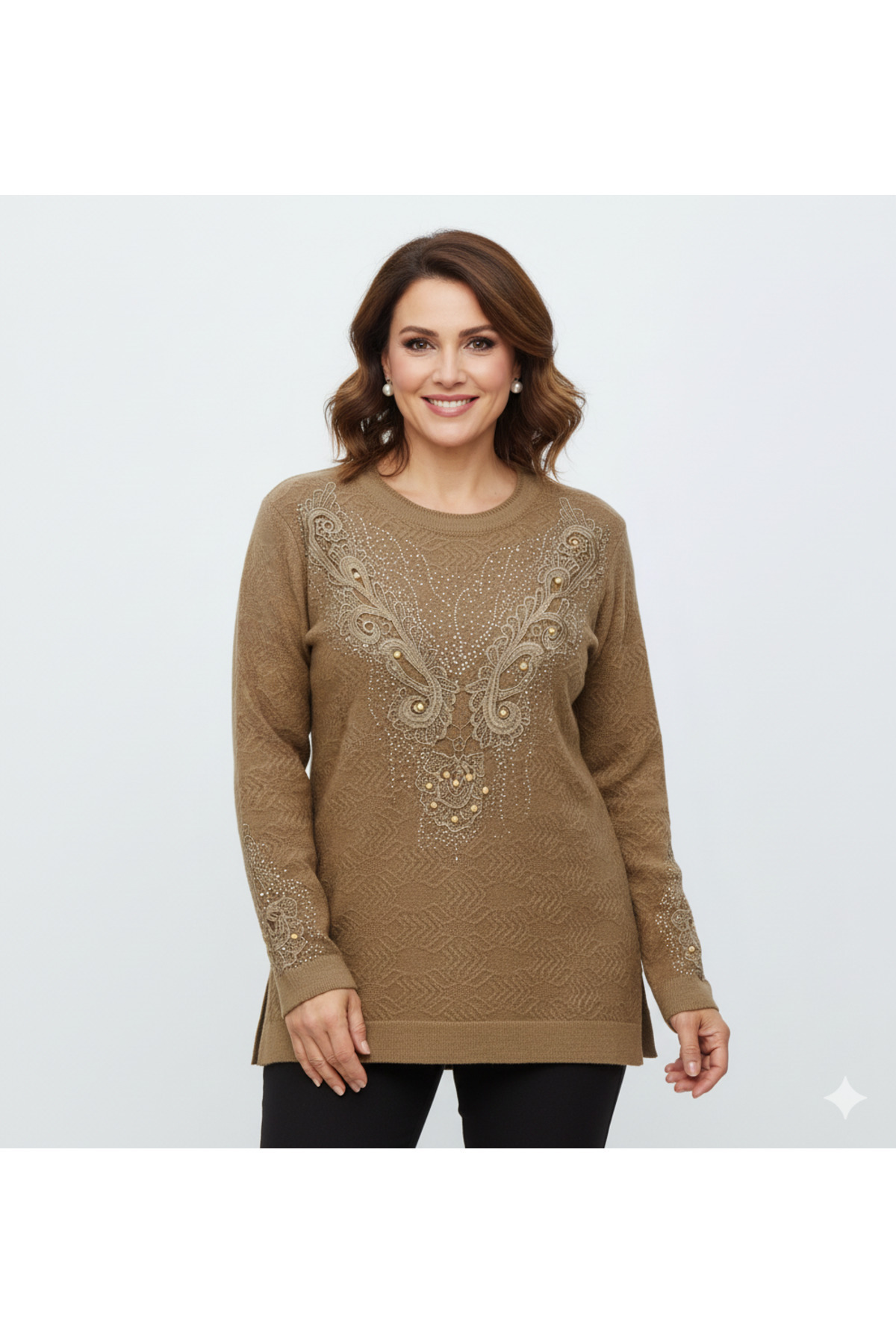 Kadın Kışlık Kazak Bisiklet Yaka Pamuklu Kardelen Örgü Nakışlı Boncuklu Tam Kalıp Kadın Kışlık Kazak Bisiklet Yaka Pamuklu Kardelen Örgü Nakışlı Boncuklu Tam Kalıp OPKK26ECRNMOD23 XL