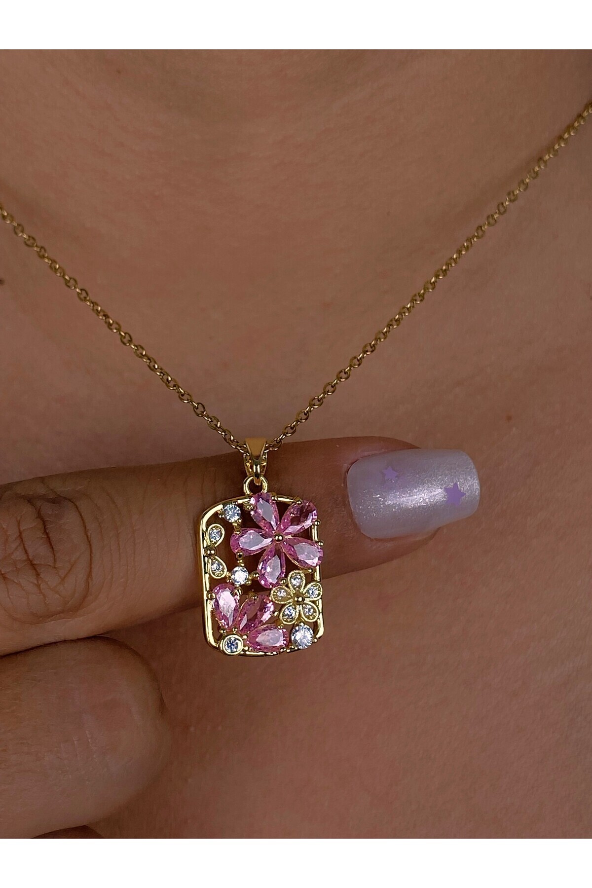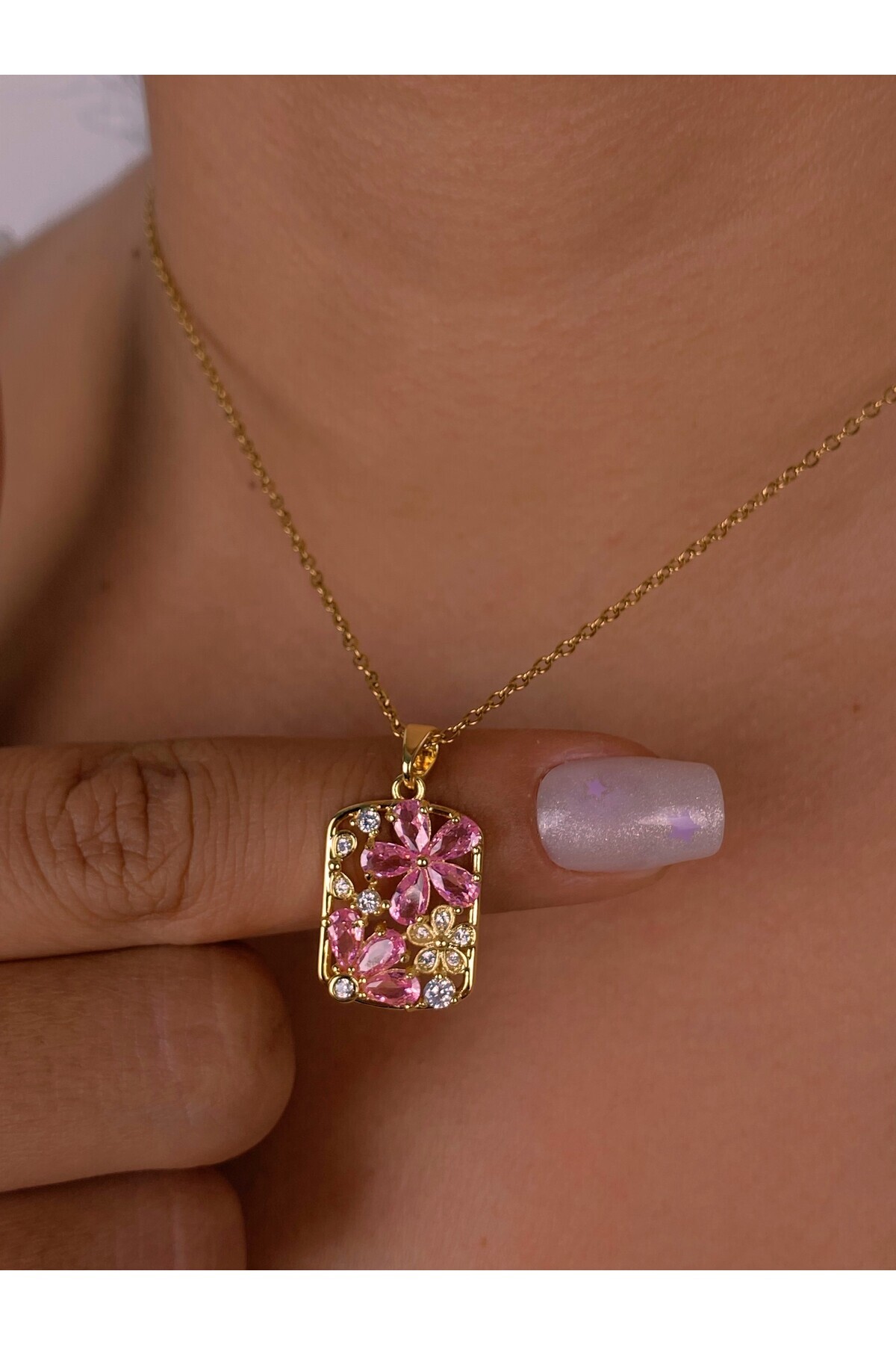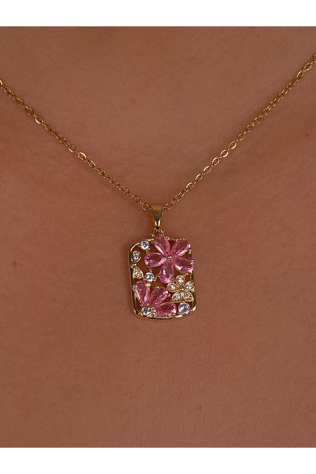 Minimal Pembe Zirkon Çiçek Sanat Tablosu Kolye Tasarım Çelik Gold Kaplama Hediyelik Minimal Pembe Zirkon Çiçek Sanat Tablosu Kolye Tasarım Çelik Gold Kaplama Hediyelik Steel1021 - Stainless Steel Necklace تک سایز