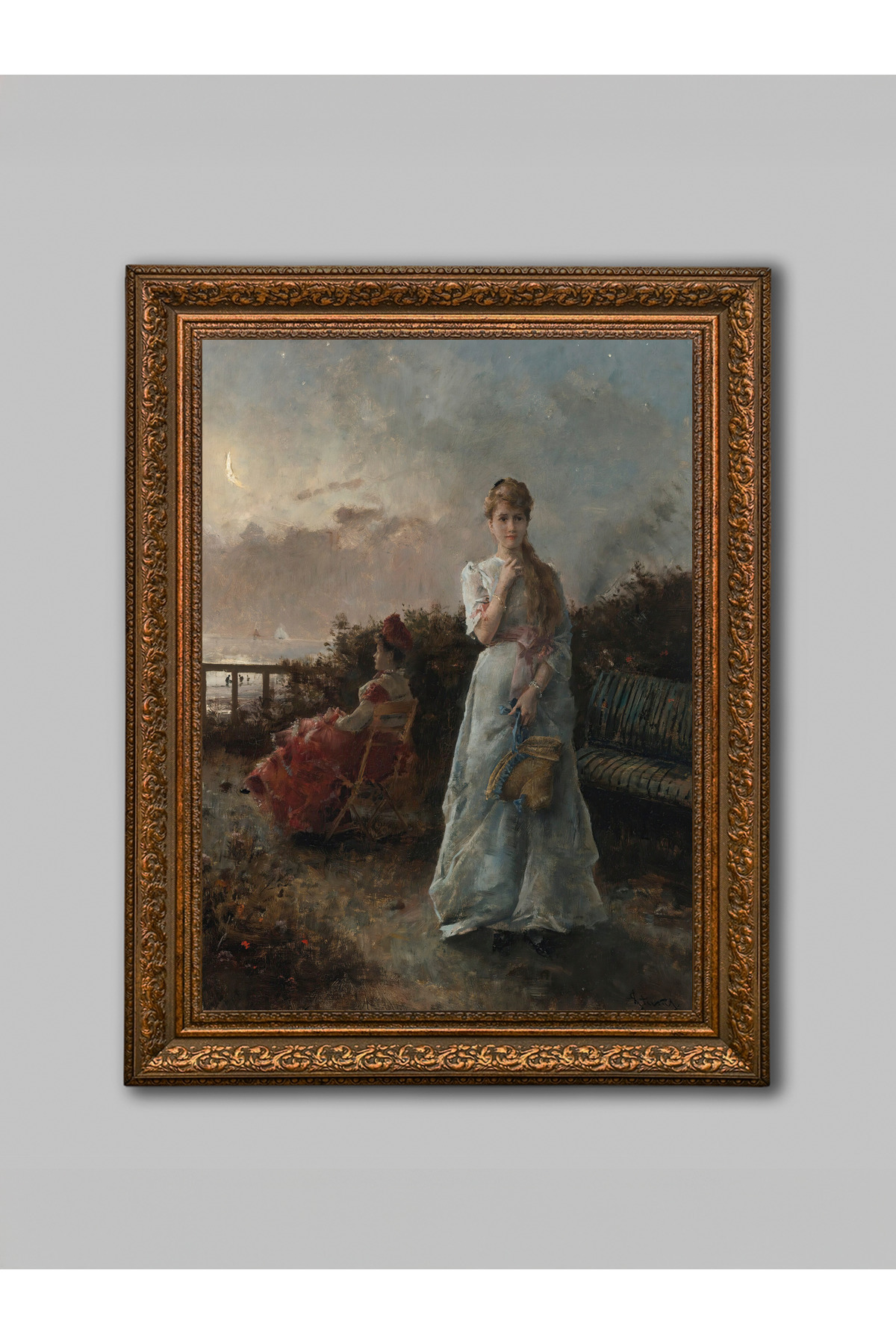 Ay Işığında Sahilde Düşünceli Kadın Tablo – Bronz Eskitme Çerçeve Ay Işığında Sahilde Düşünceli Kadın Tablo – Bronz Eskitme Çerçeve ms_desen_d_023 50 x 70