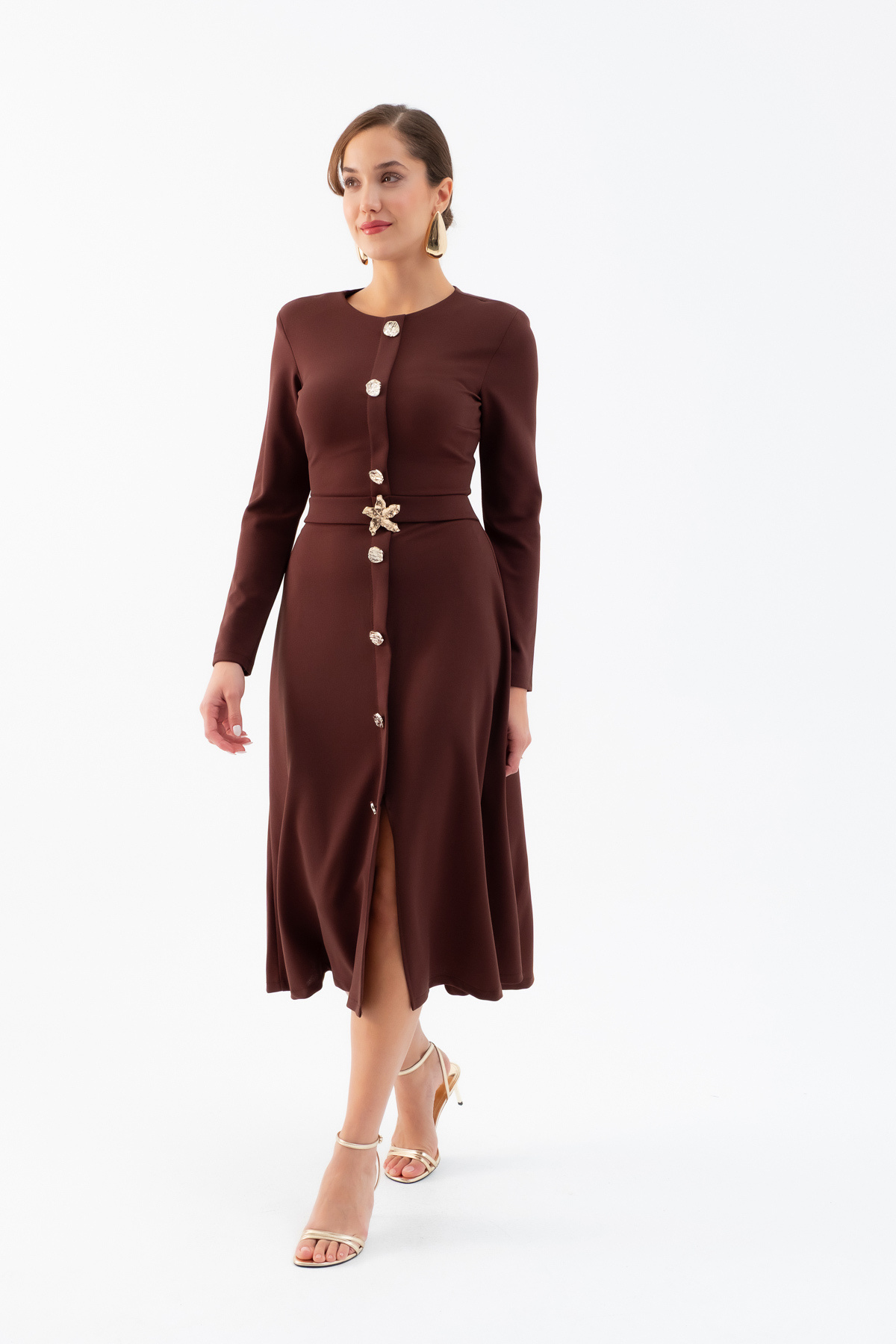 Kadın Lacivert Büzgülü Aksesuar Detaylı Midi Elbise Kadın Lacivert Büzgülü Aksesuar Detaylı Midi Elbise 25K873027 XL