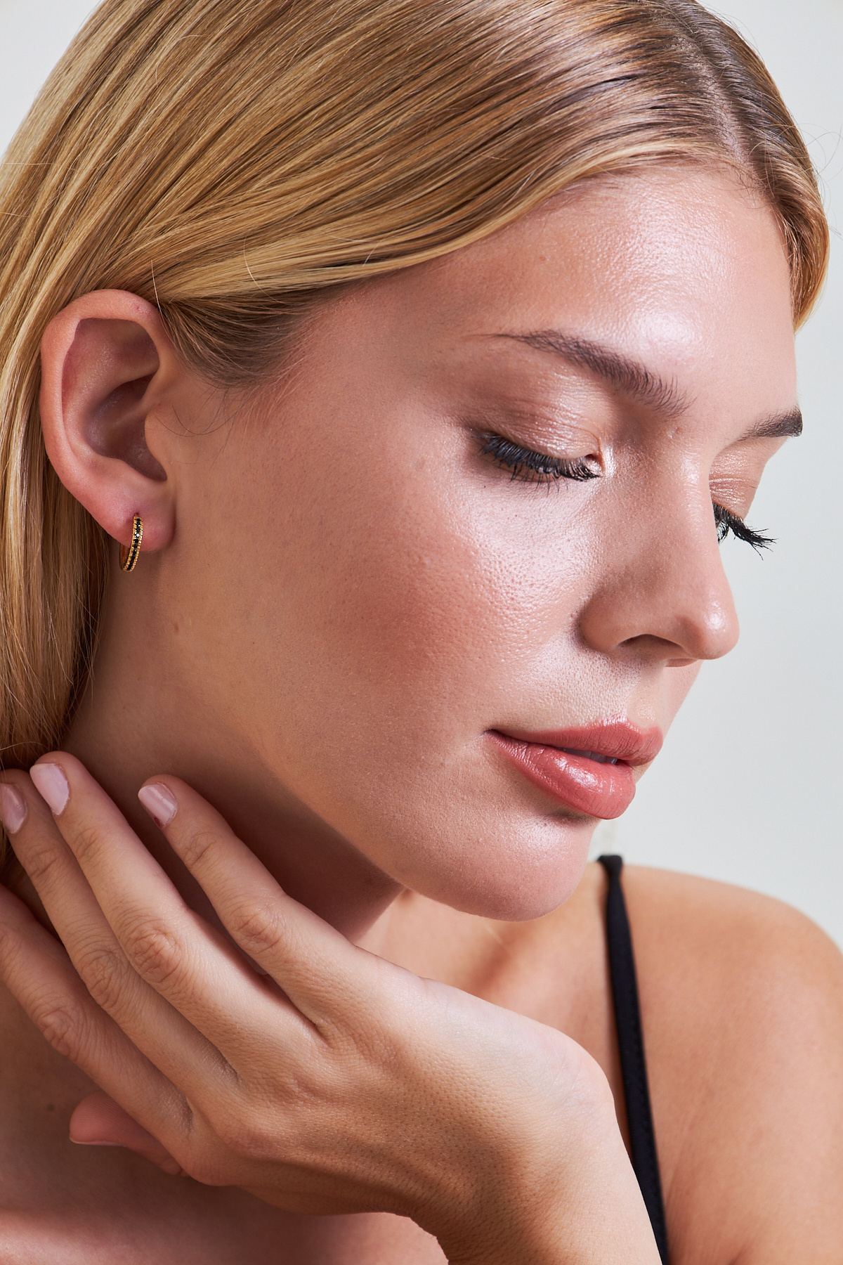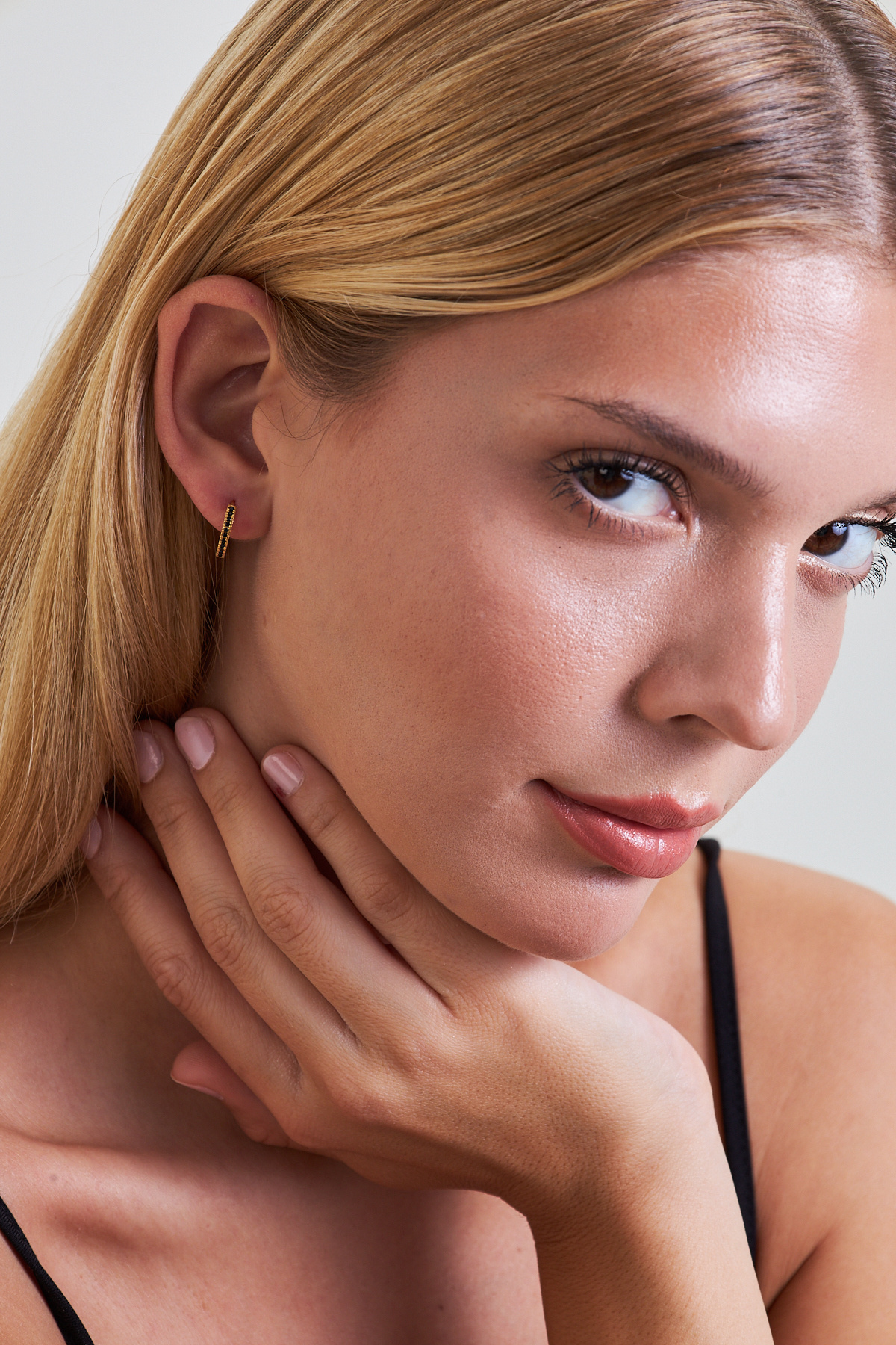 18K Altın Kaplama Siyah Taş Sıralı 925 Ayar Gümüş Kadın Küpe VKP-7515 - Ventino 18K Altın Kaplama Siyah Taş Sıralı 925 Ayar Gümüş Kadın Küpe VKP-7515 - Ventino تک سایز