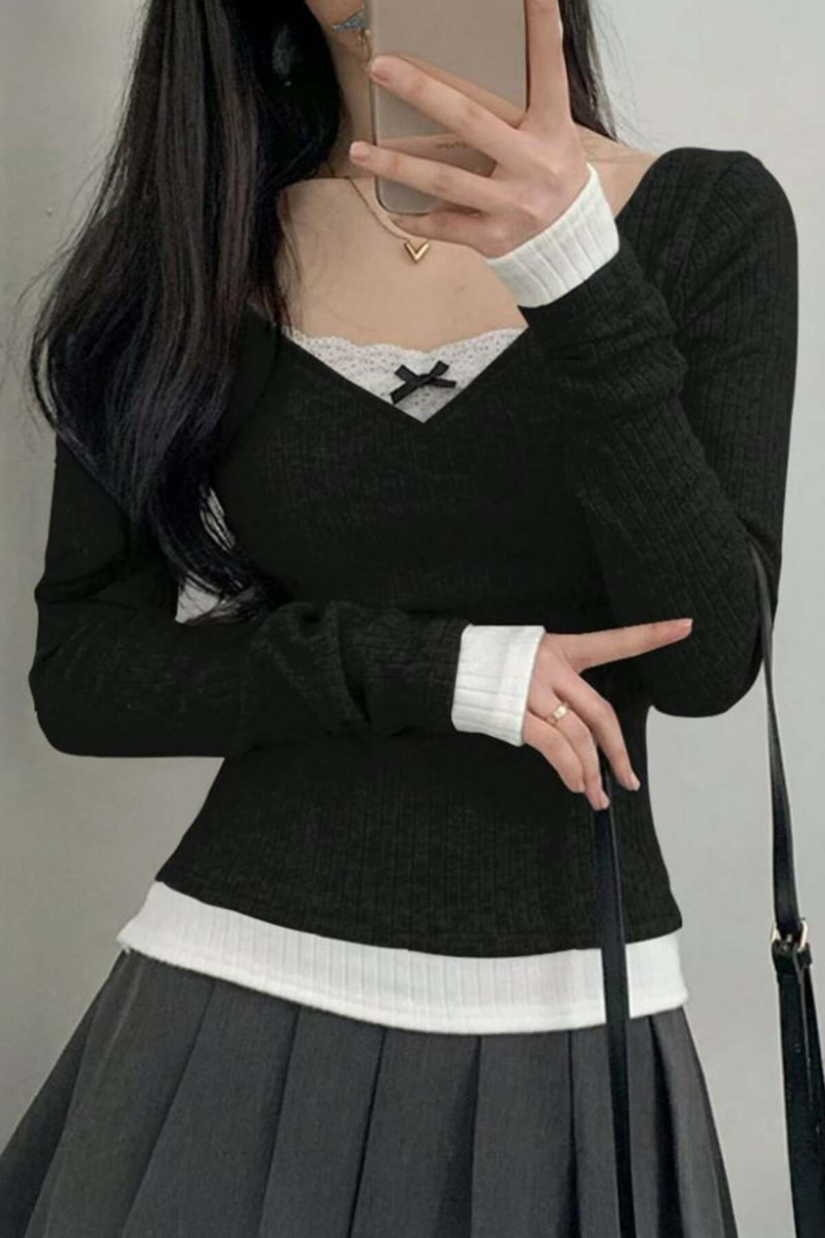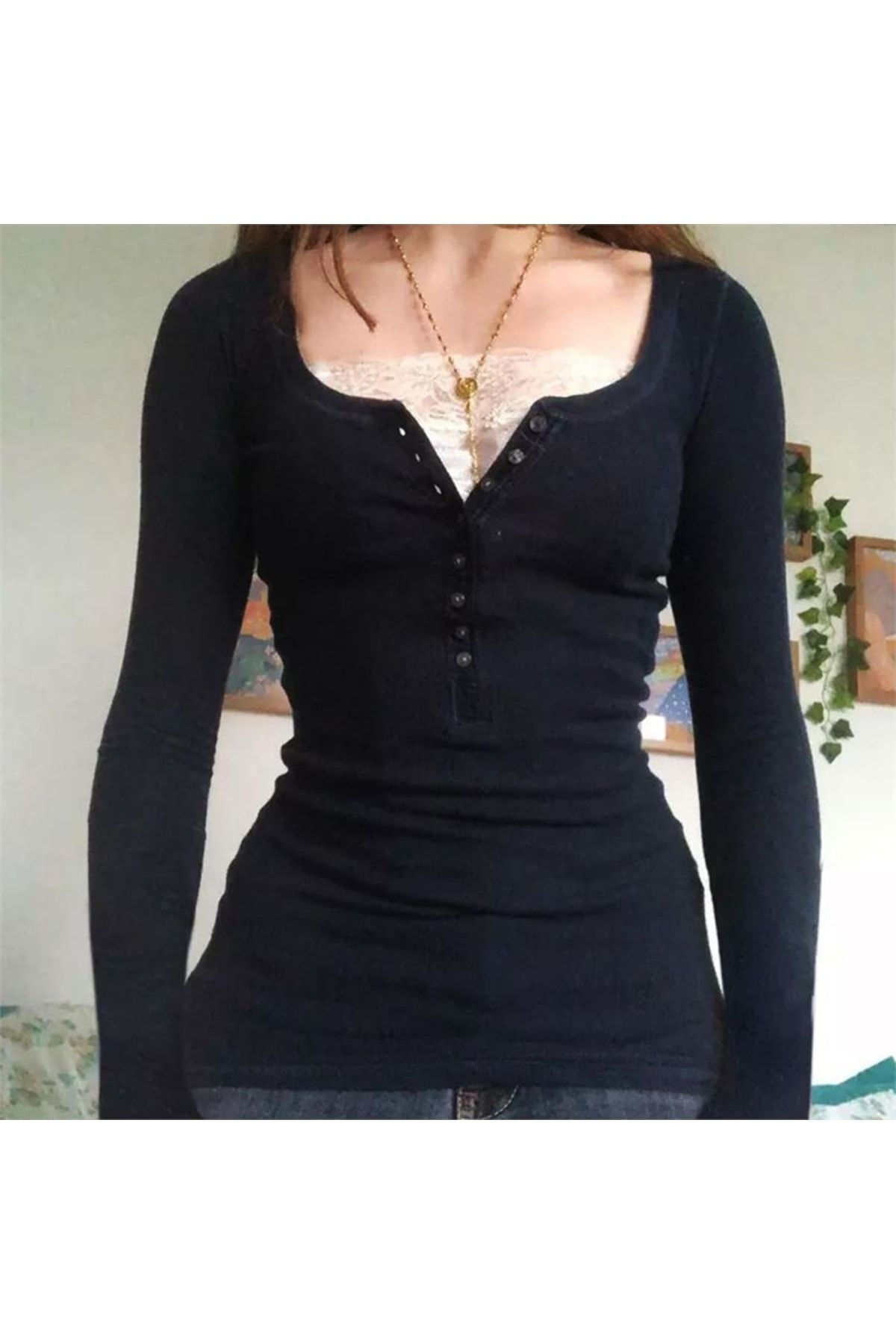 Fiyonklu Dantel Yaka Detaylı Ek İç Bodyli Basic Bluz Fiyonklu Dantel Yaka Detaylı Ek İç Bodyli Basic Bluz Popgiyim675y L