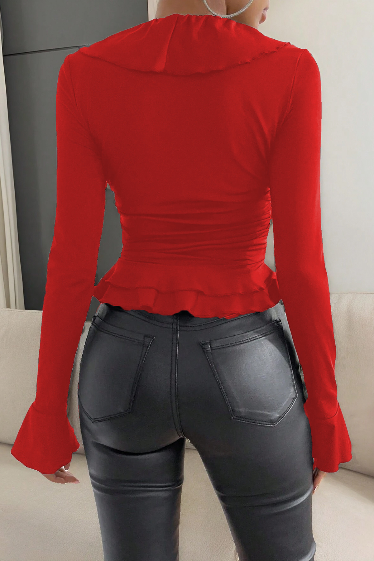 Uzun Kollu V Yaka Fırfırlı Bluz Uzun Kollu V Yaka Fırfırlı Bluz 9082 L