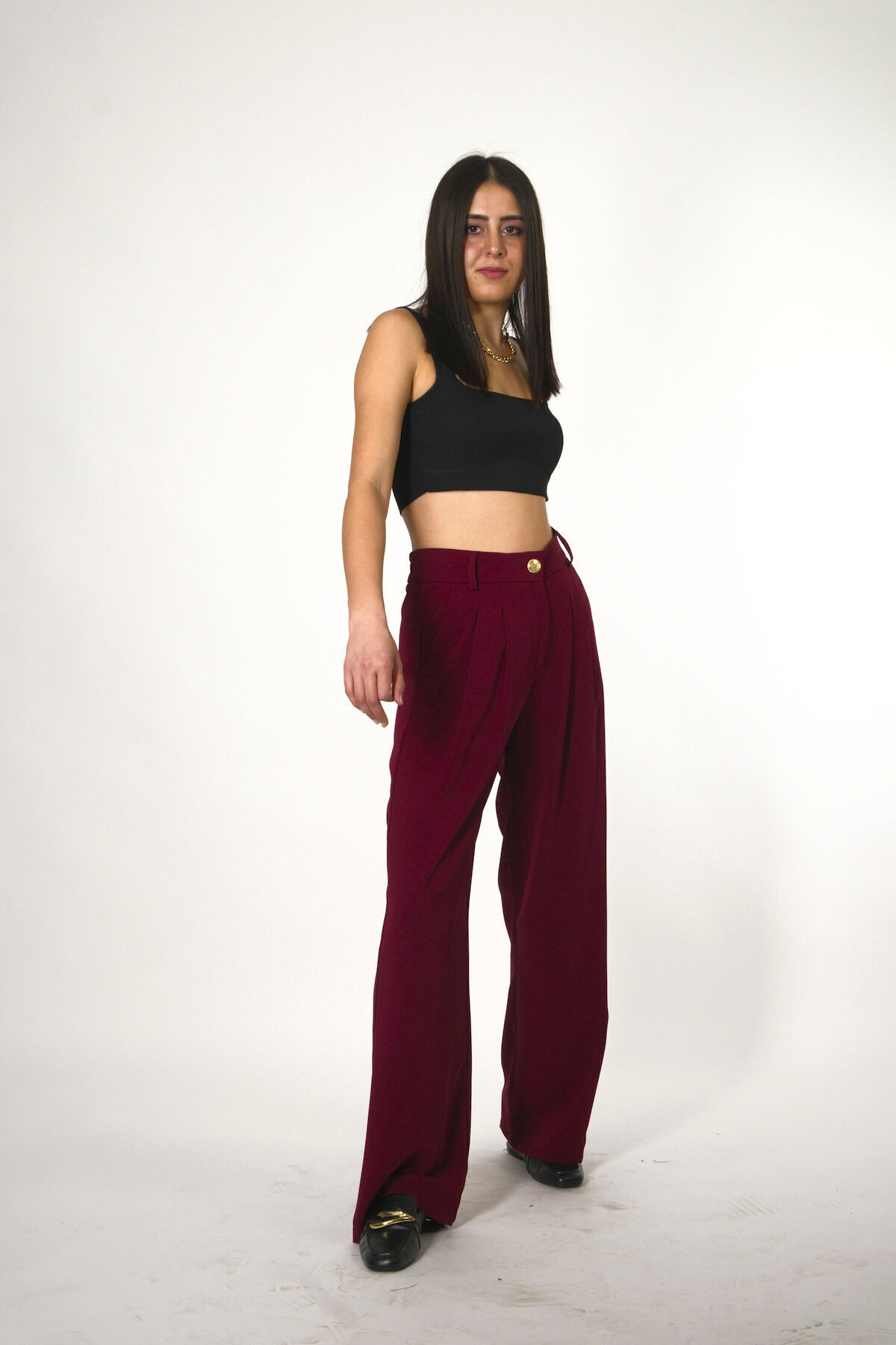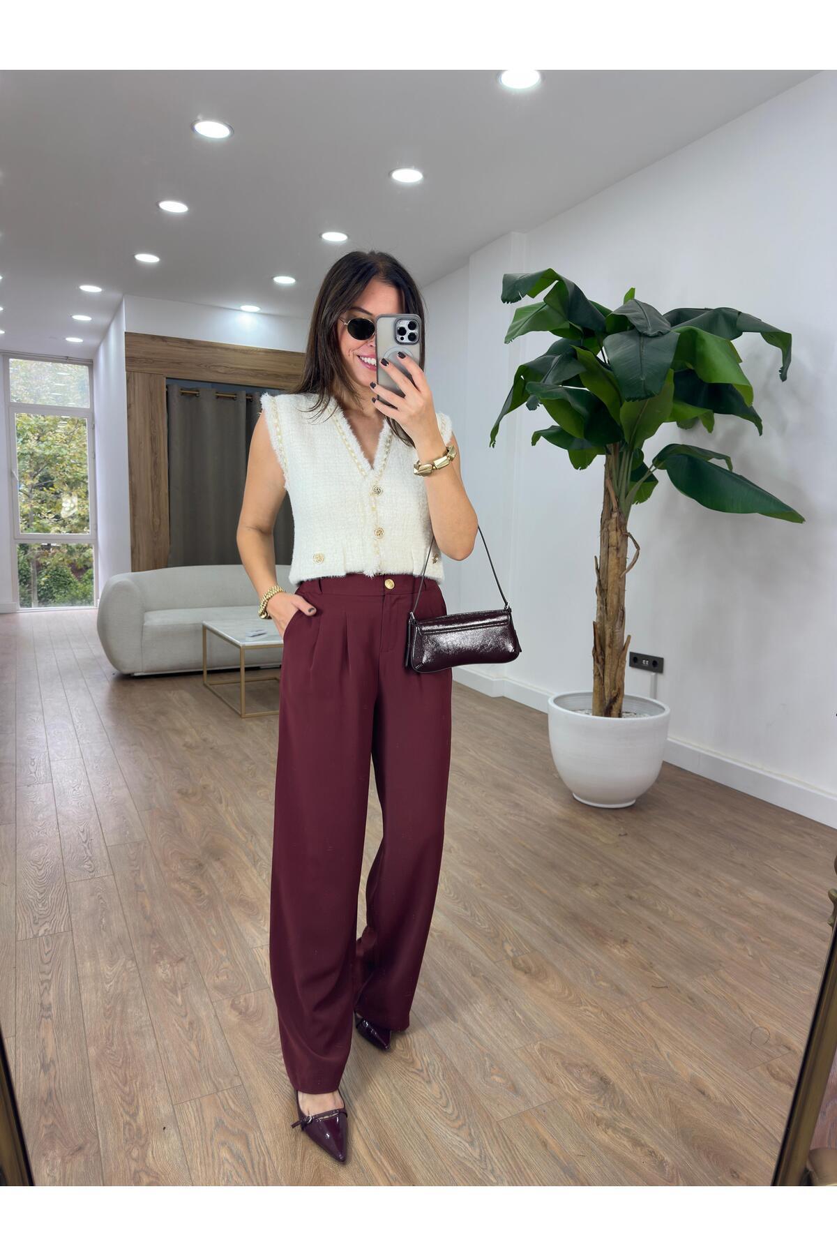 Gold Düğmeli Palazzo Pantolon - Bordo Gold Düğmeli Palazzo Pantolon - Bordo TYC752F3F3EA800C838F32500 L