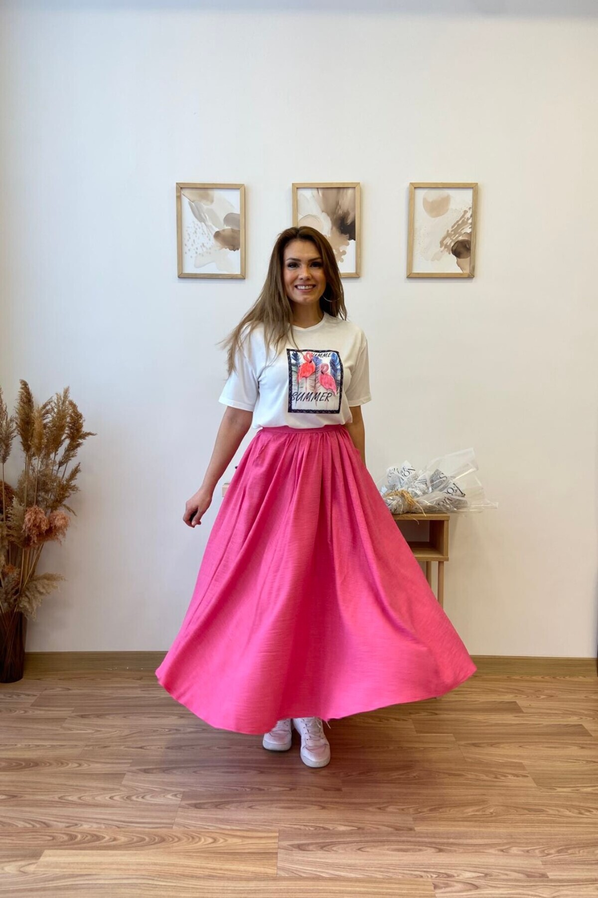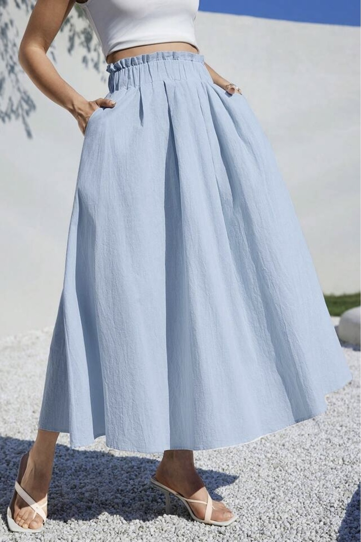 Pamuklu Yüksek Bel Beli Lastikli Cepli Bol Kesim Maxi Etek Pamuklu Yüksek Bel Beli Lastikli Cepli Bol Kesim Maxi Etek 8259 L