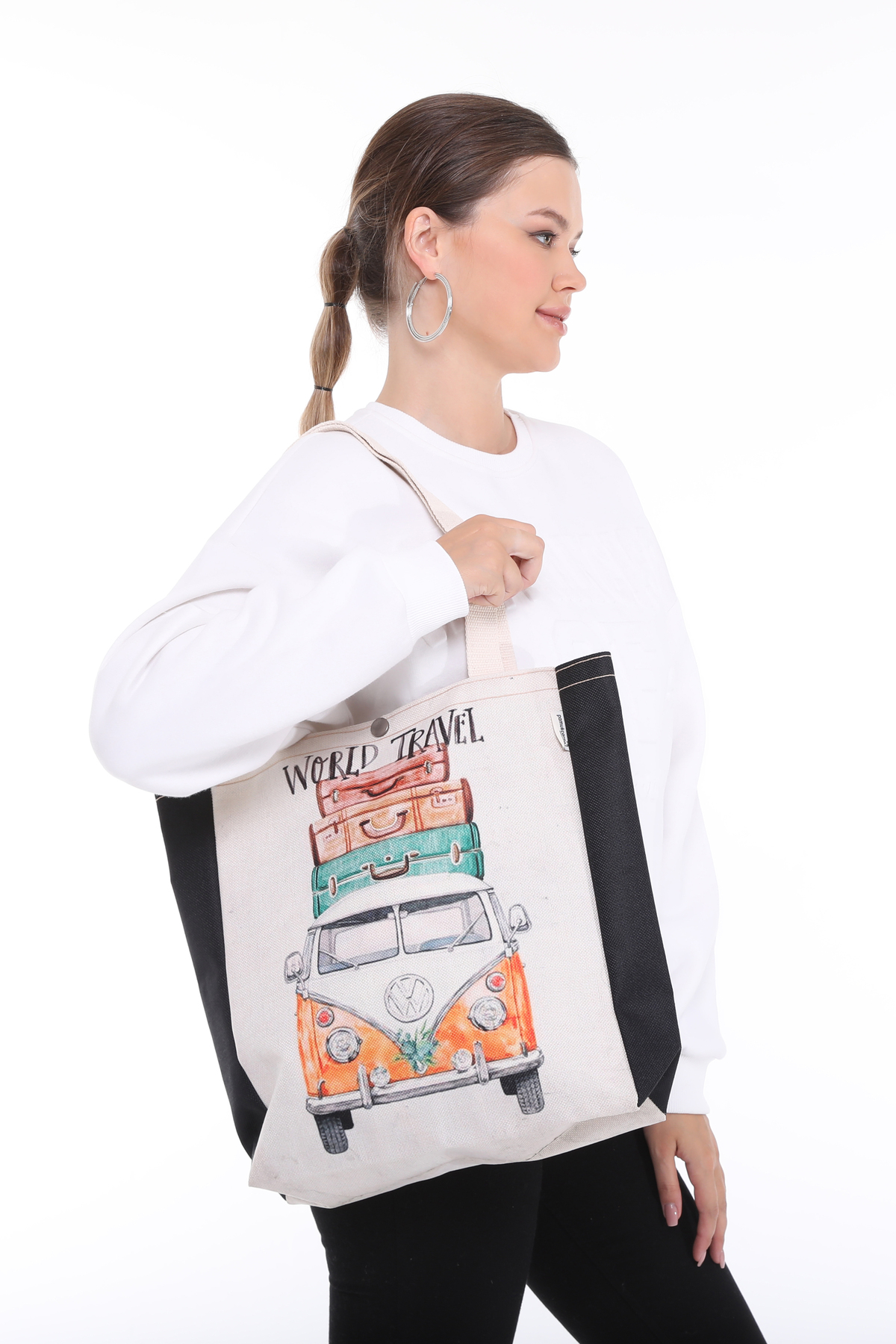 Kadın Krem Bisiklet Tasarım Çıtçıtlı Bez Çanta Kadın Krem Bisiklet Tasarım Çıtçıtlı Bez Çanta kod83 35x40