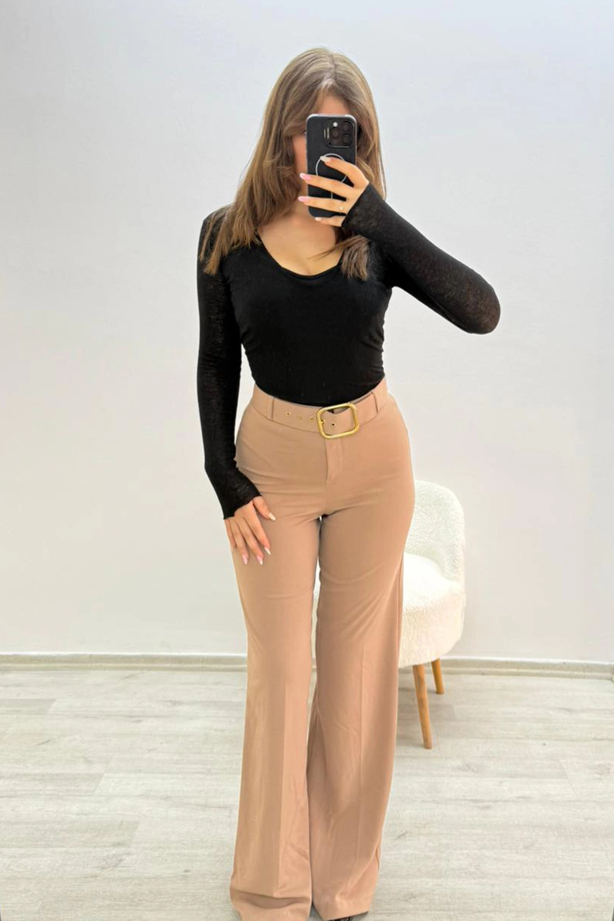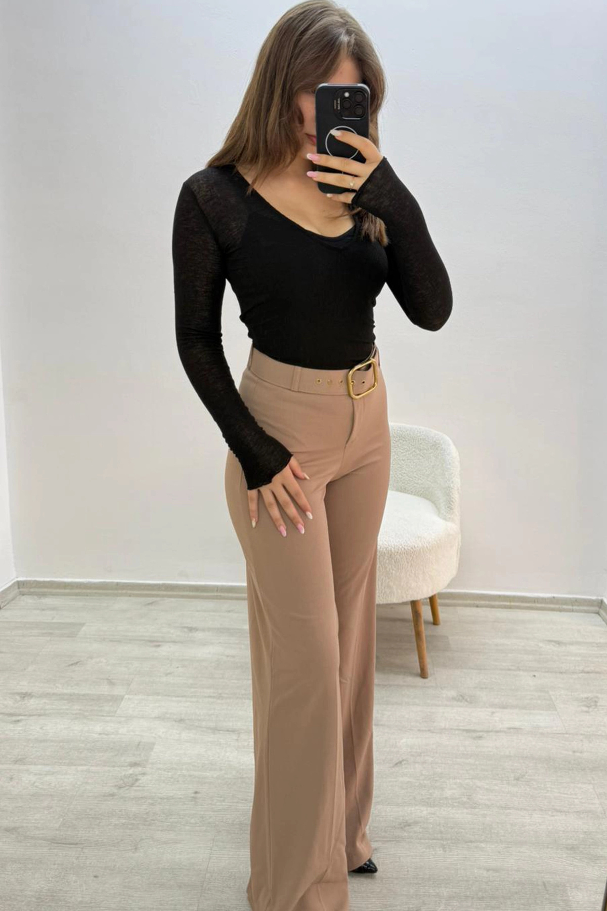 Kemerli Plazo Ultra Yüksek Bel Kahverengi Pantolon Kemerli Plazo Ultra Yüksek Bel Kahverengi Pantolon P355S551 L