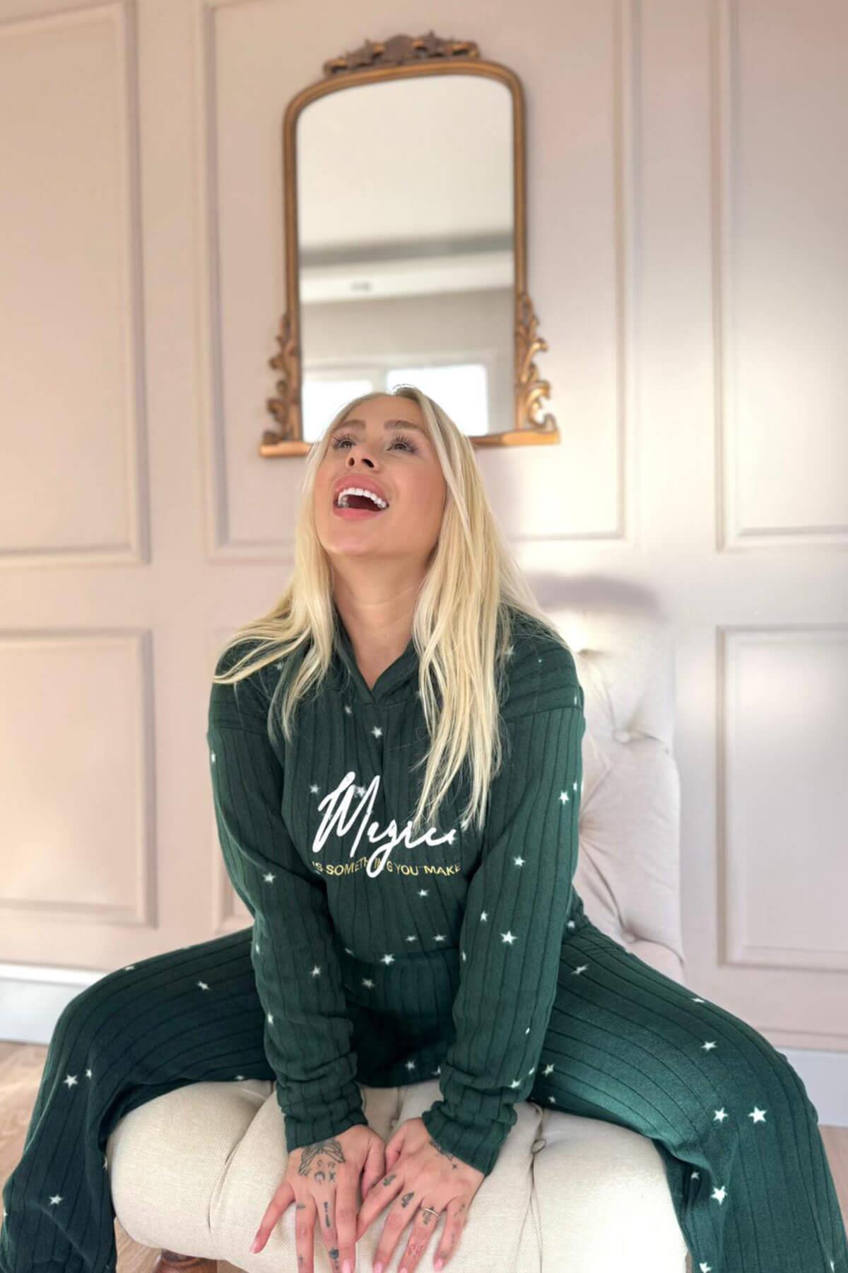 Yeşil Magic Desenli Kapşonlu Peluş Polar Pijama Takımı Yeşil Magic Desenli Kapşonlu Peluş Polar Pijama Takımı 5013 2XL