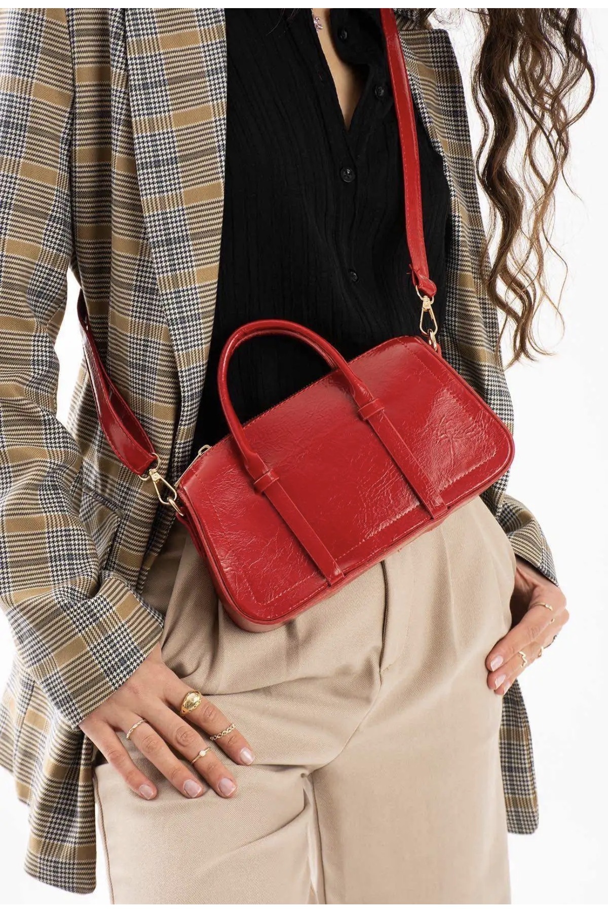 Kırmızı Yeşili Deri Küçük Baget Kadın El Ve Omuz Çanta Kırmızı Yeşili Deri Küçük Baget Kadın El Ve Omuz Çanta Velina Kırmızı Standart