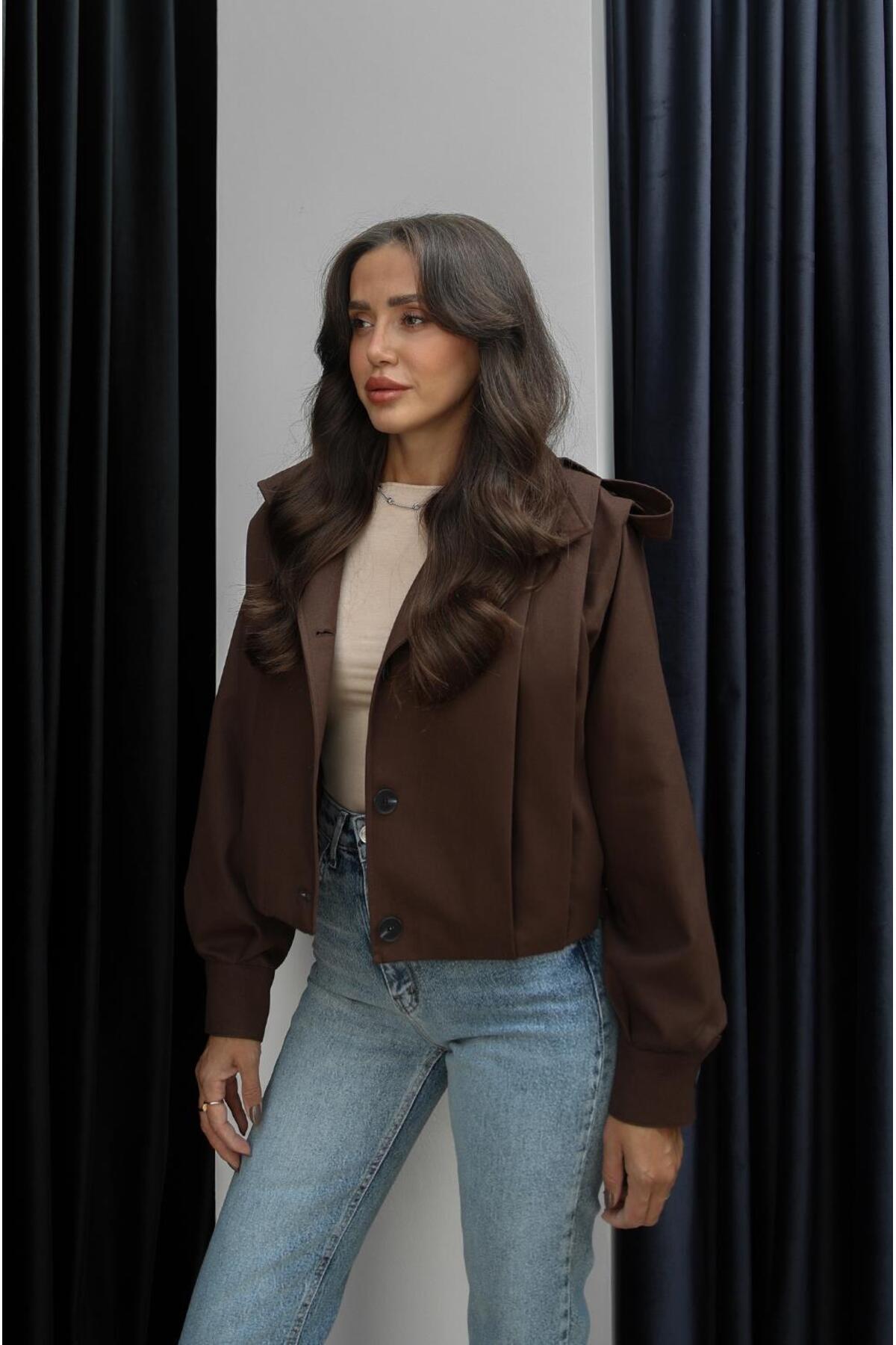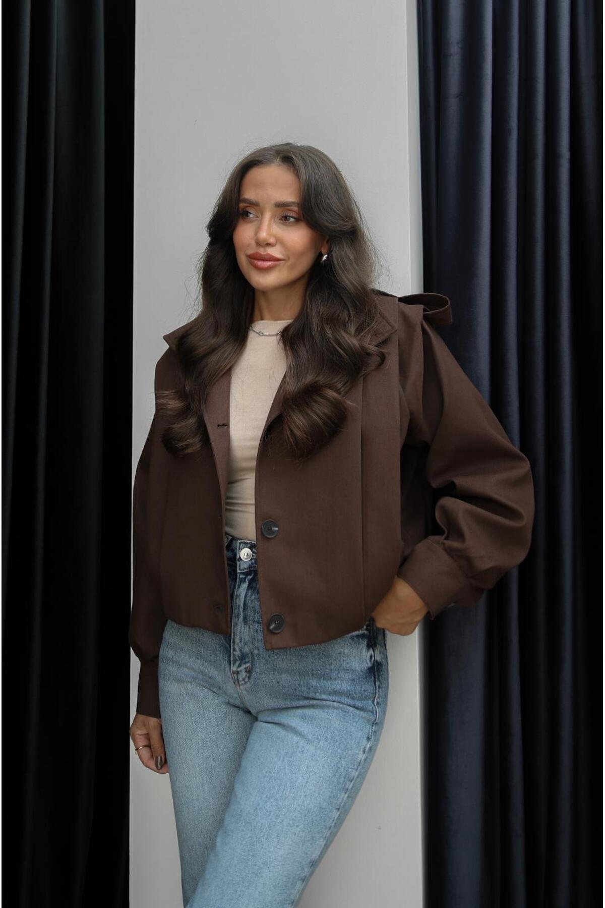 Kahverengi Belushi Dik Yaka Apoletli Ceket Kahverengi Belushi Dik Yaka Apoletli Ceket Hcek609 L