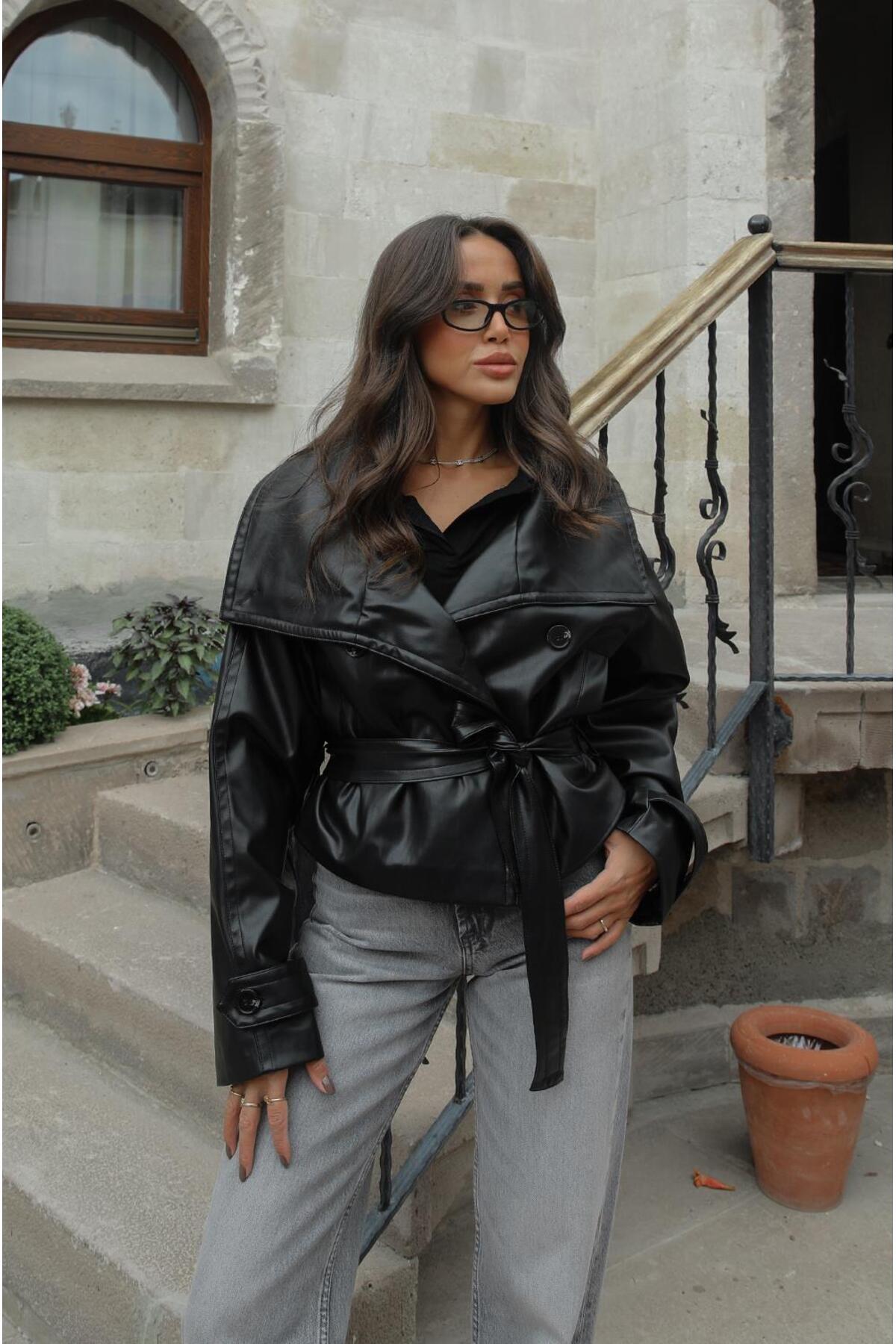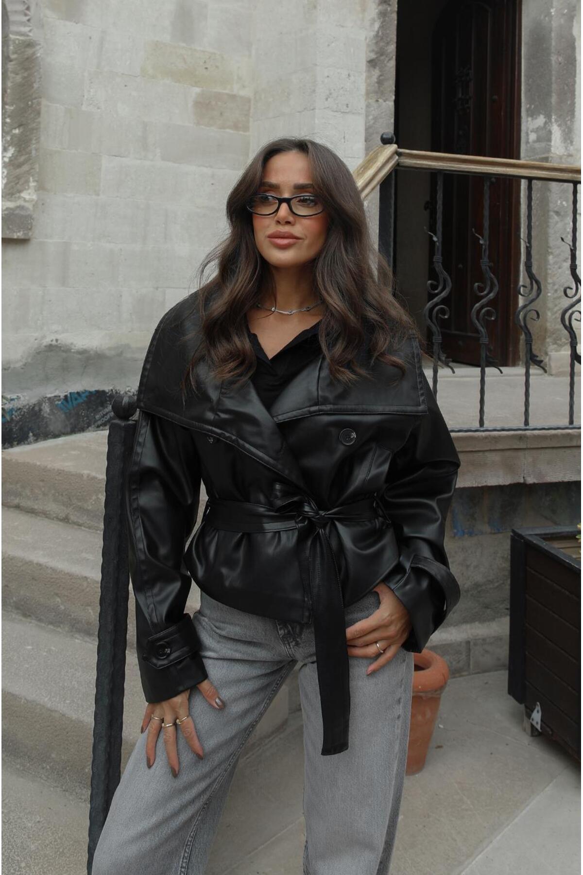 Siyah Kısa Deri Trençkot Siyah Kısa Deri Trençkot Hcek622 L