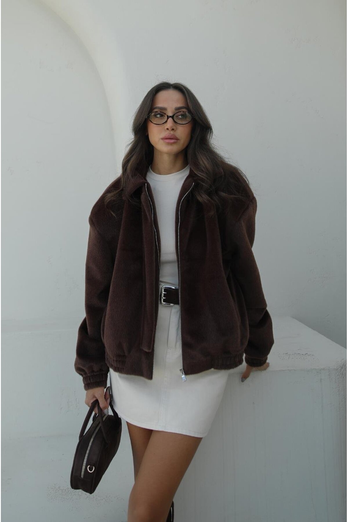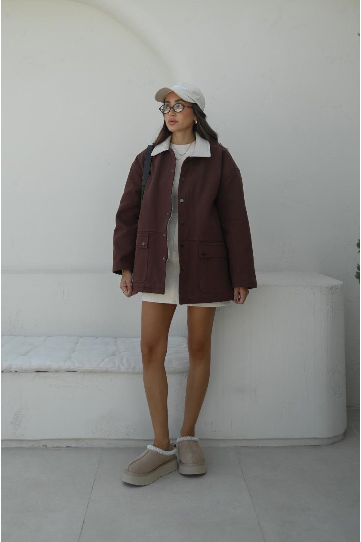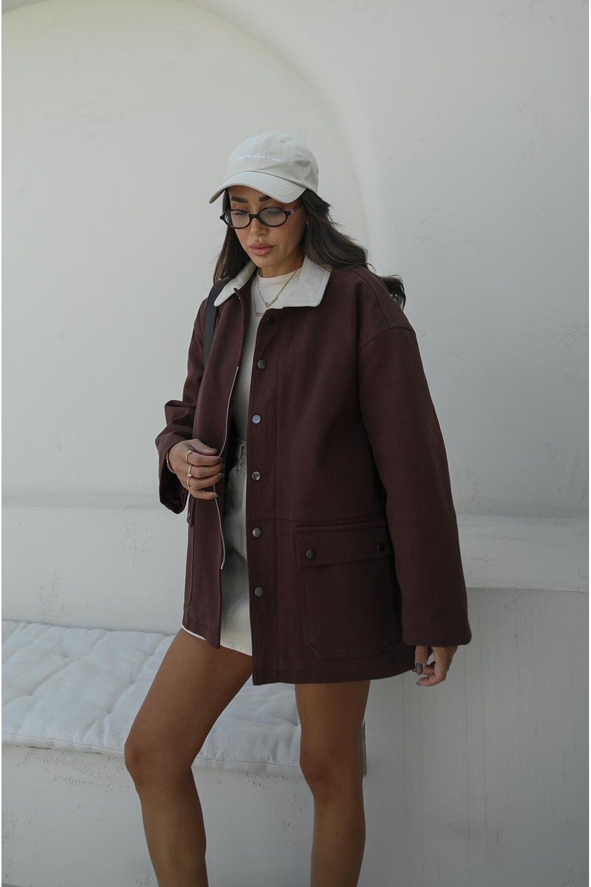 Kahverengi Kadife Yakalı Astarlı Ceket Kahverengi Kadife Yakalı Astarlı Ceket Hcek626 L