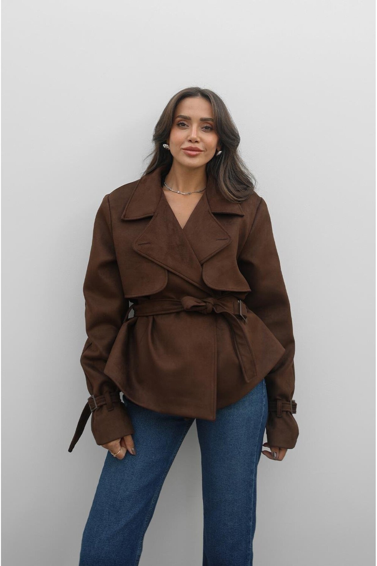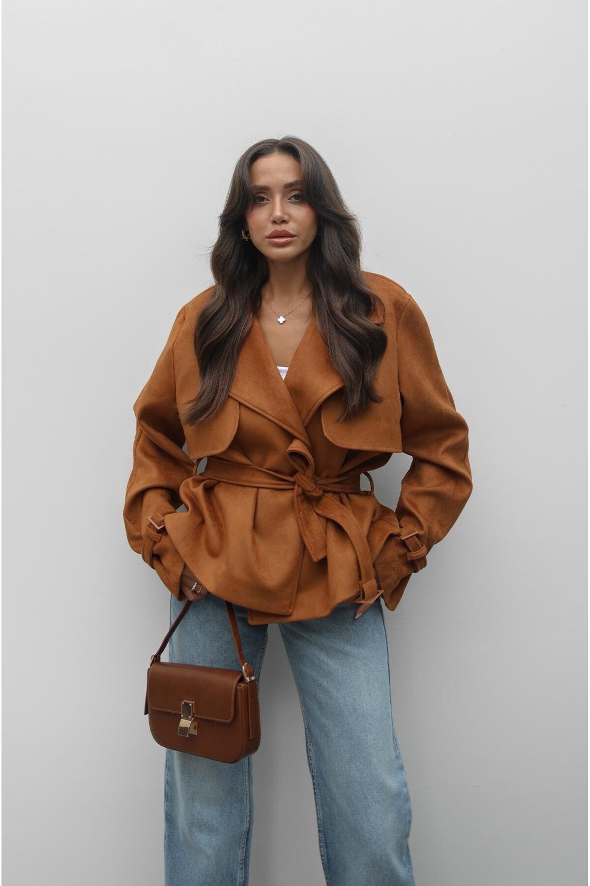 Kahverengi Gavin Kuşaklı Süet Ceket Kahverengi Gavin Kuşaklı Süet Ceket Hcek607 L