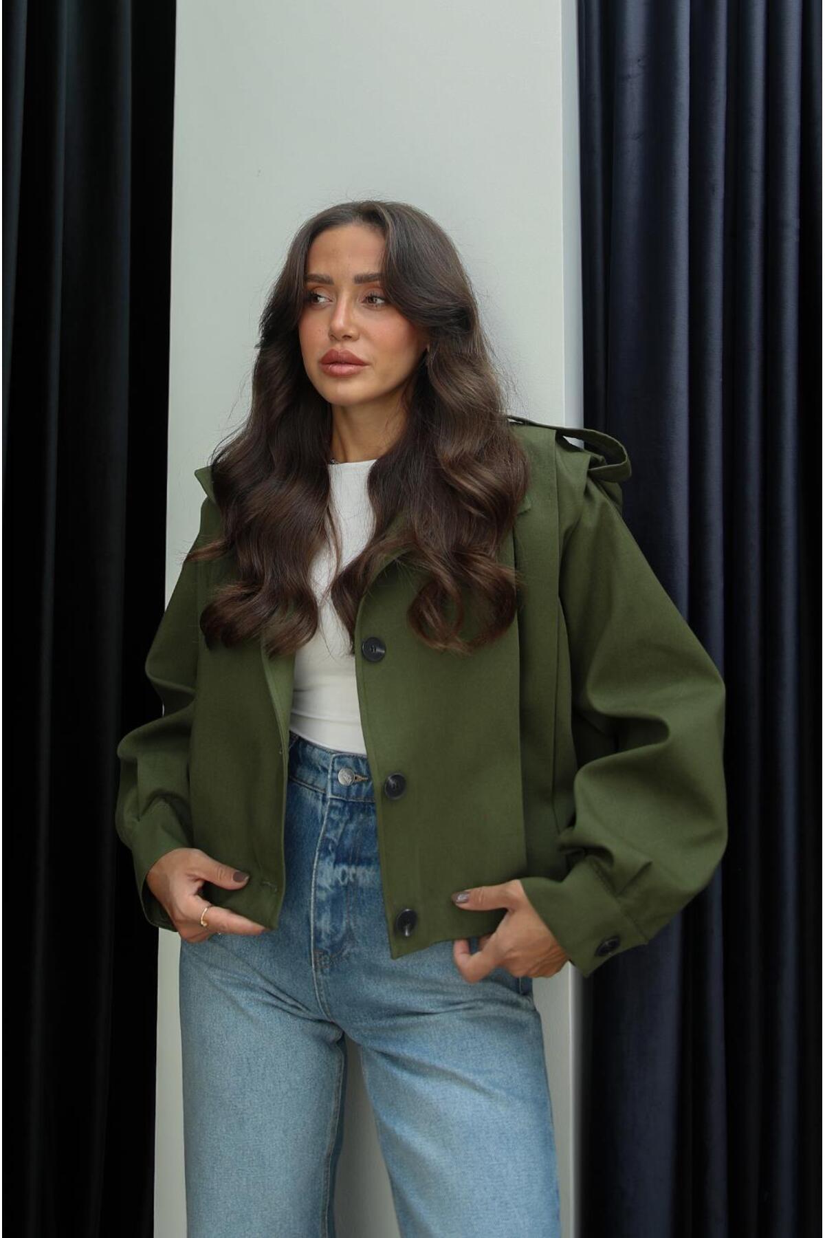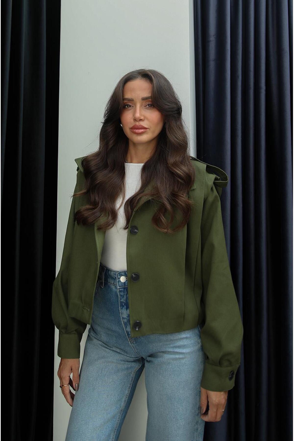 Haki Belushi Dik Yaka Apoletli Ceket Haki Belushi Dik Yaka Apoletli Ceket Hcek609 L