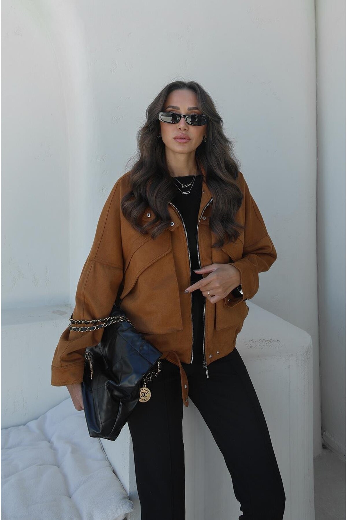 Taba Cep Detaylı Süet Bomber Ceket Taba Cep Detaylı Süet Bomber Ceket Hcek627 L