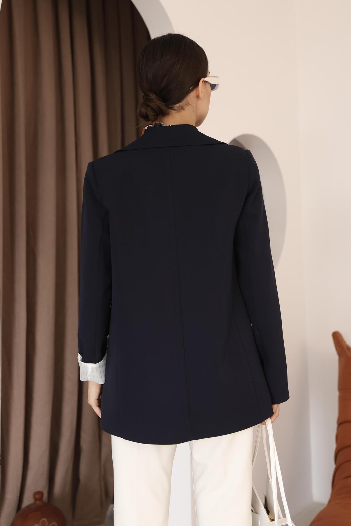 Kadın Lacivert Kol Detaylı Blazer Ceket Kadın Lacivert Kol Detaylı Blazer Ceket POL4070 40
