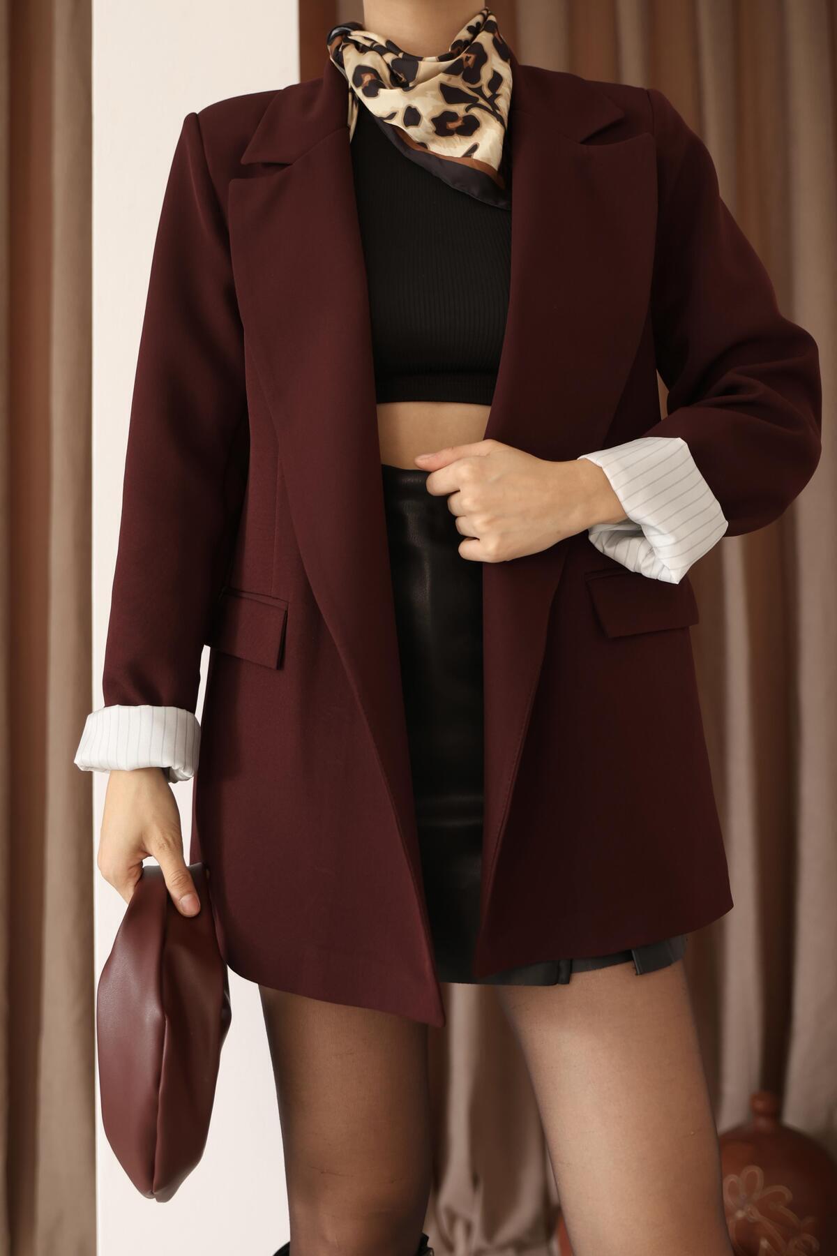 Kadın Bordo Kol Detaylı Blazer Ceket Kadın Bordo Kol Detaylı Blazer Ceket POL4070 40