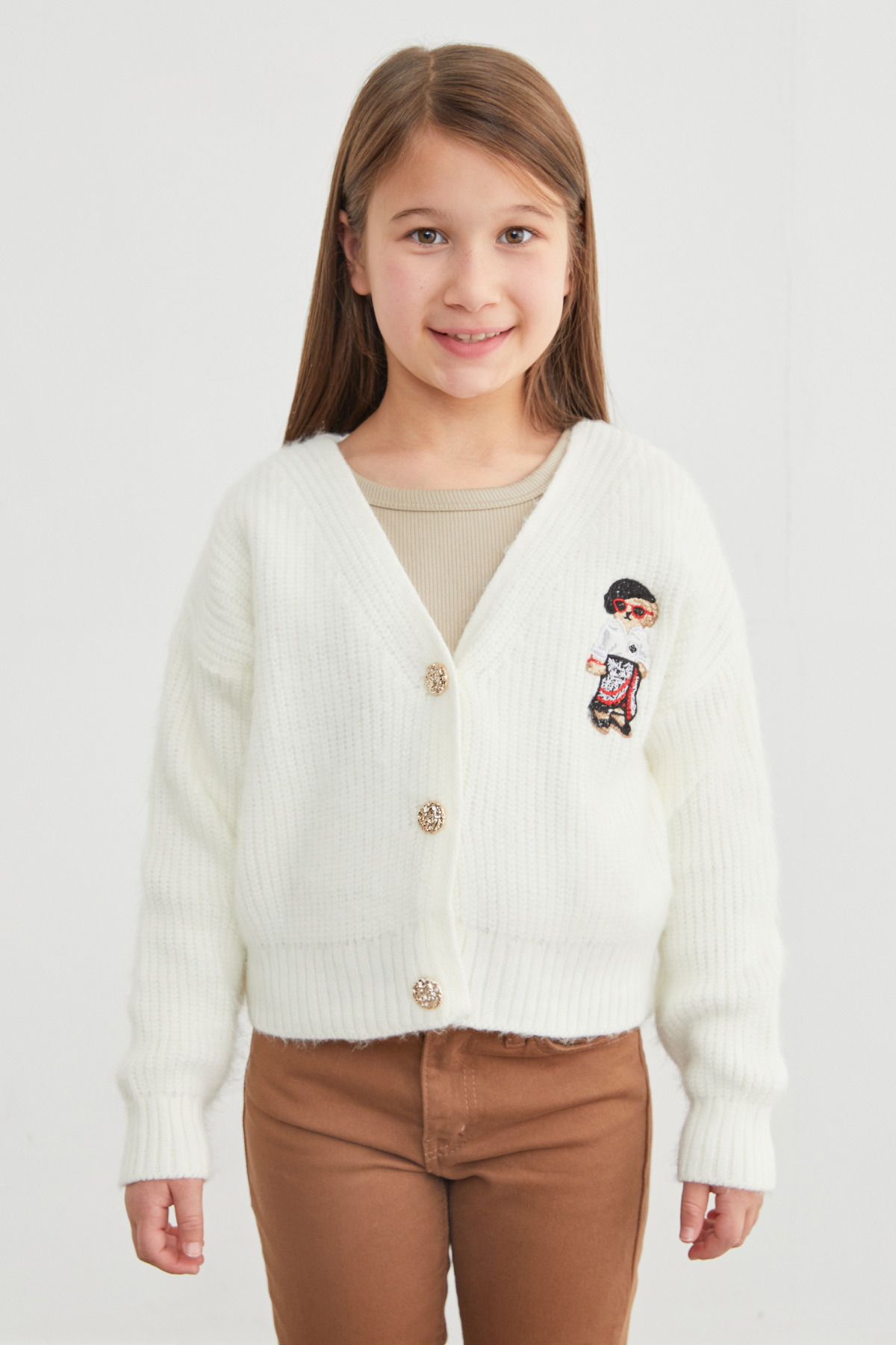 Ayıcık Nakışlı Düğmeli Kız Çocuk Triko Hırka Ayıcık Nakışlı Düğmeli Kız Çocuk Triko Hırka 26KCCK601133792 14-15 Yaş