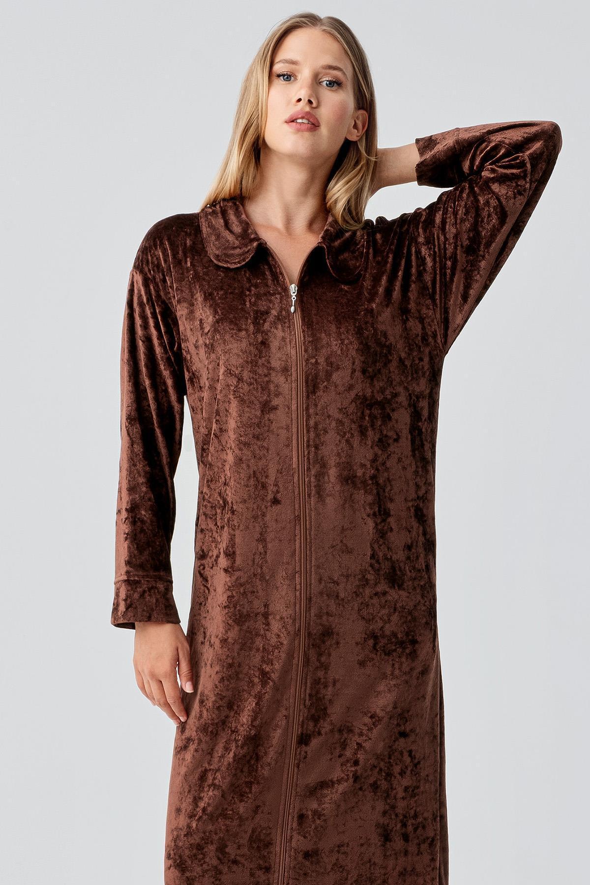 Uzun Kollu Fermuarlı Cepli Esnek Viskoz Kadife Elbise Uzun Kollu Fermuarlı Cepli Esnek Viskoz Kadife Elbise 18108 2XL