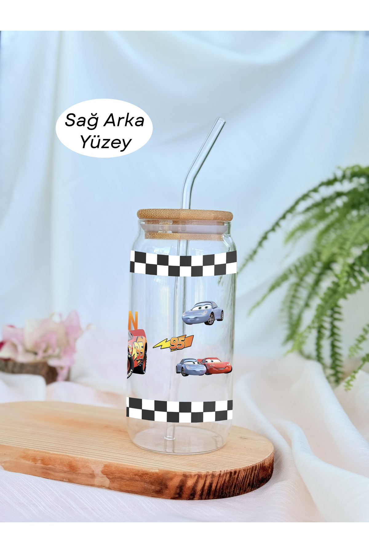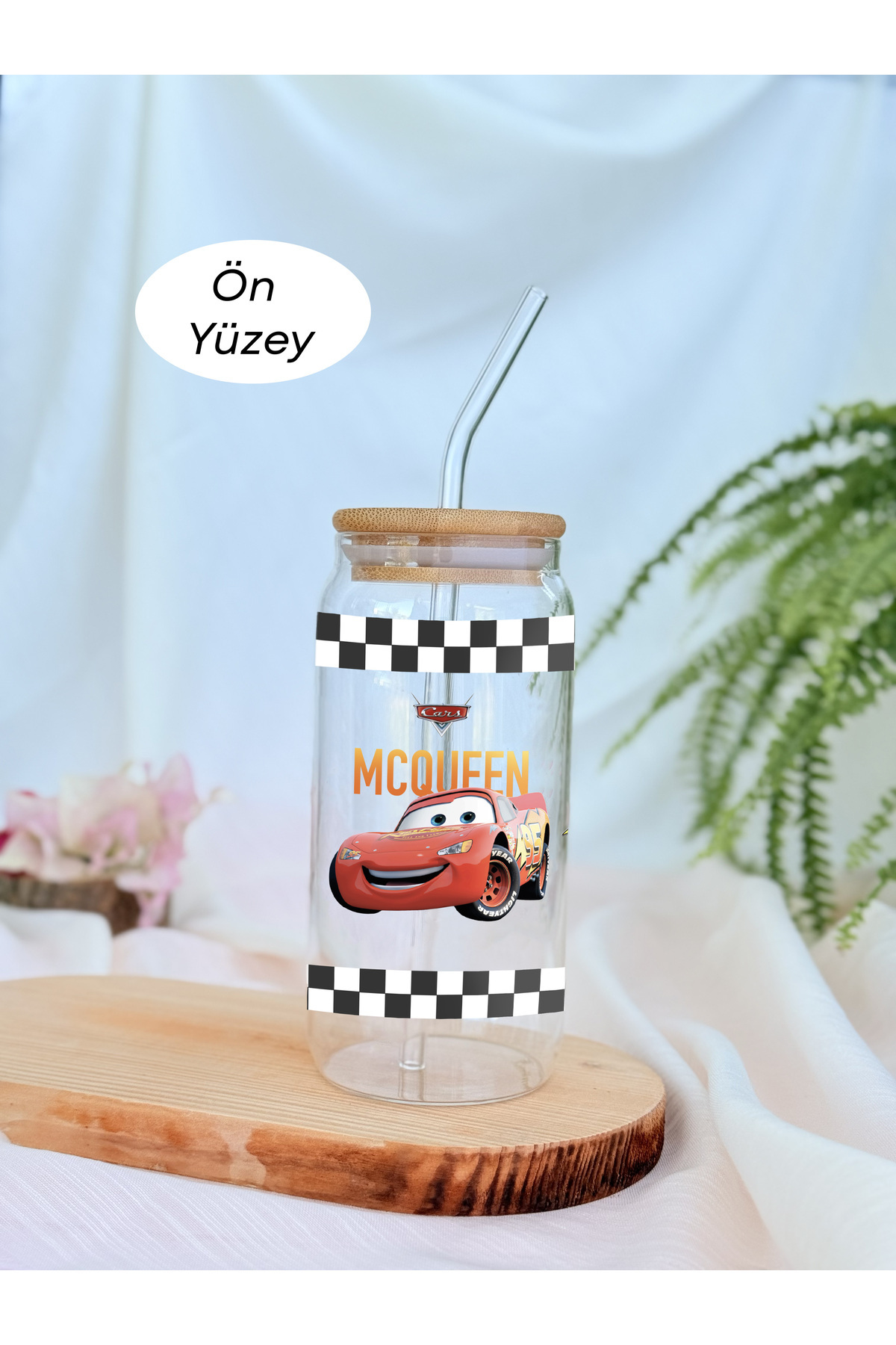 Şimşek McQueen Desenli Bambu Kapaklı, Pipetli Cam Soğuk Kahve Bardağı Şimşek McQueen Desenli Bambu Kapaklı, Pipetli Cam Soğuk Kahve Bardağı 15 تک سایز