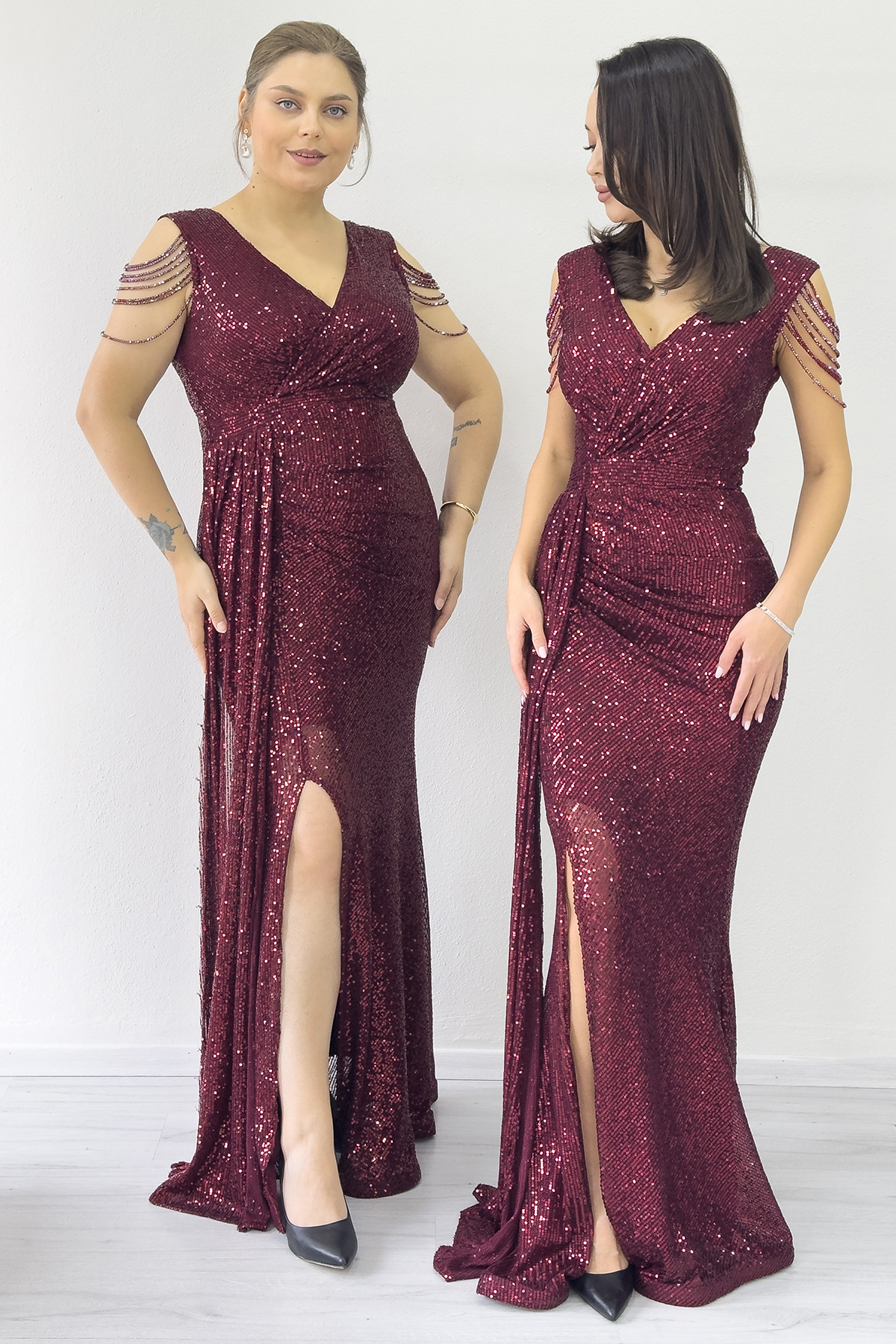 Kadın Simli Kruvaze Yaka Taş Detaylı Büyük Beden Abiye Elbise Lacivert, Gold, Bordo,Siyah Kadın Simli Kruvaze Yaka Taş Detaylı Büyük Beden Abiye Elbise Lacivert, Gold, Bordo,Siyah 000423 5XL