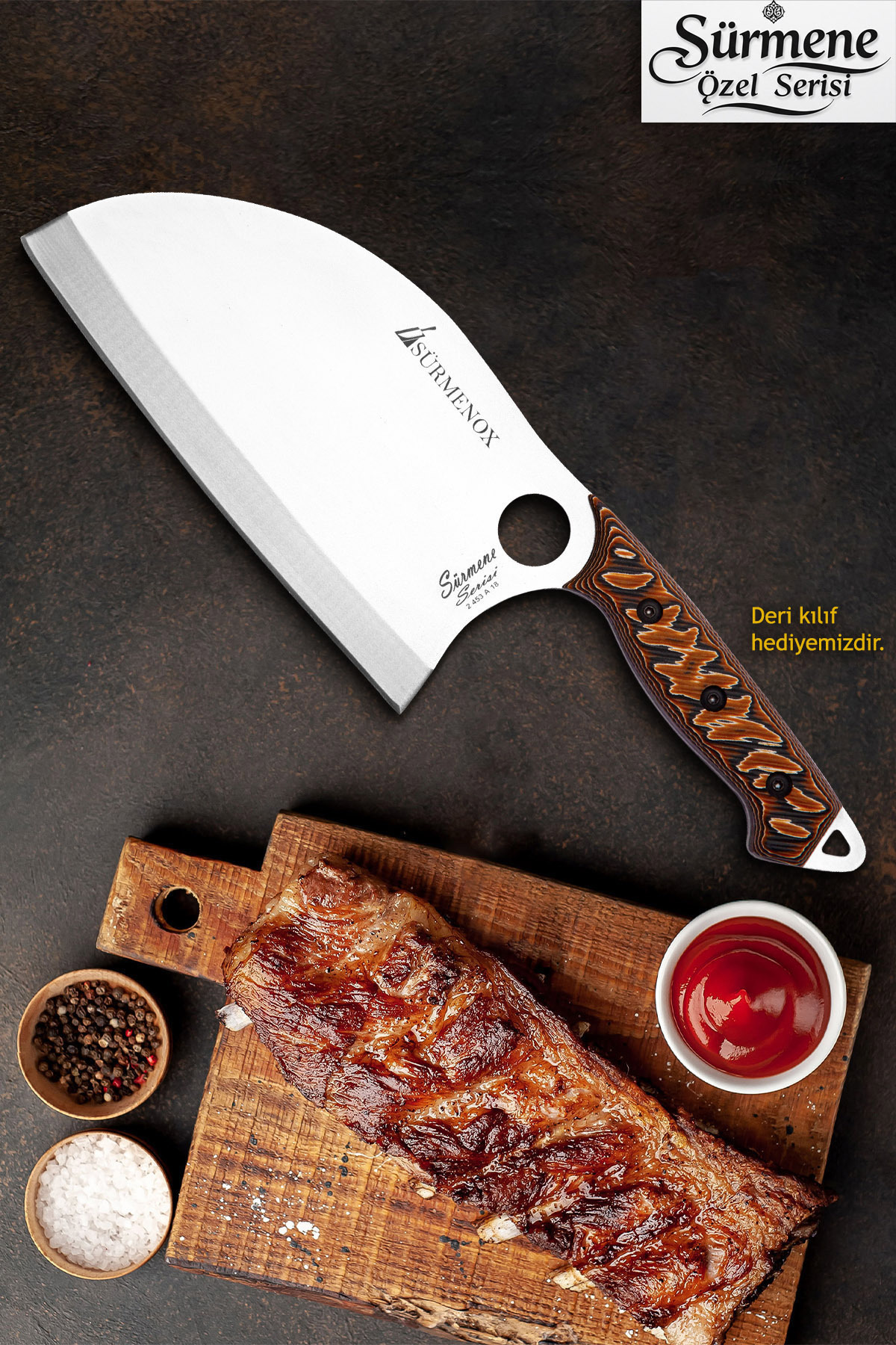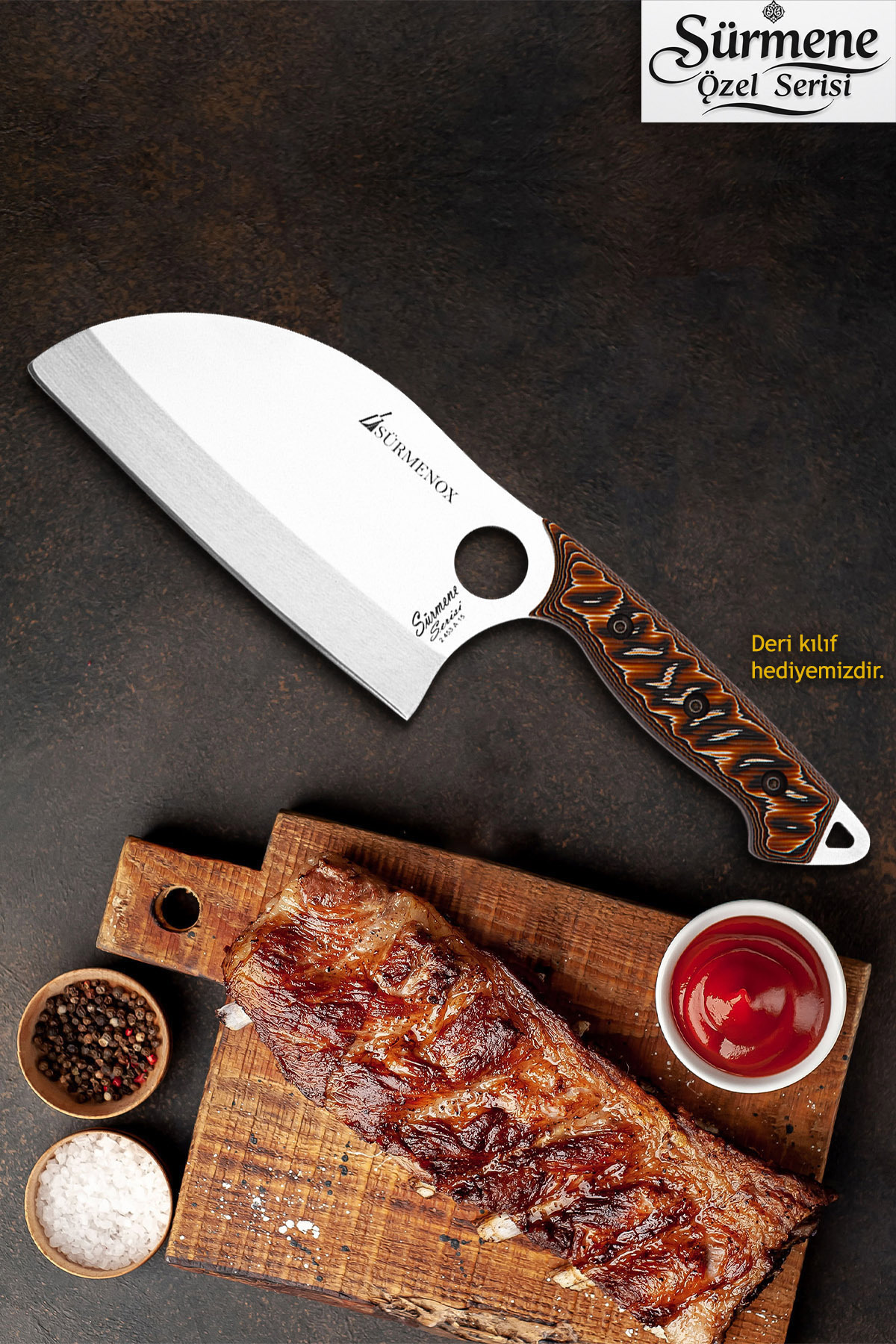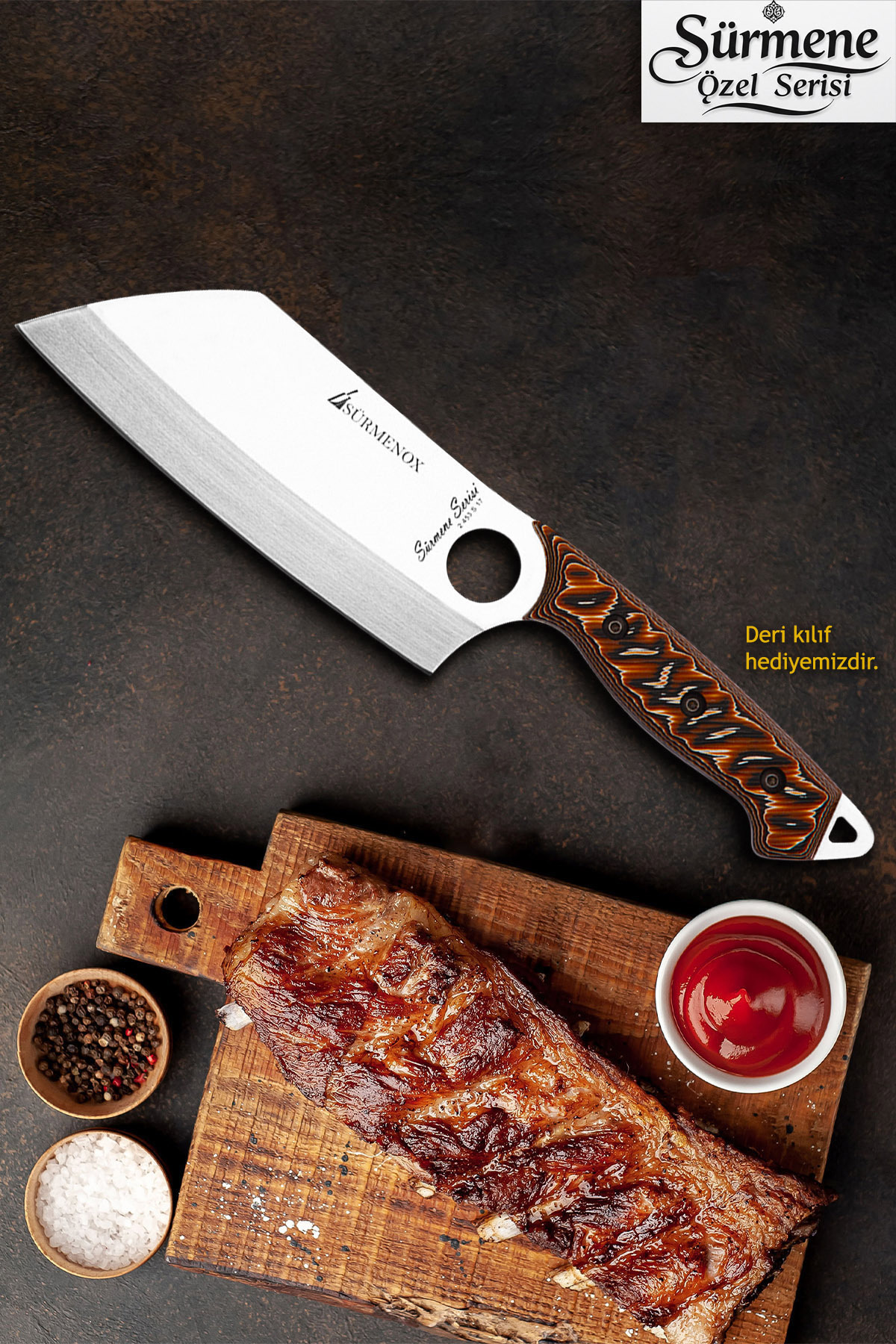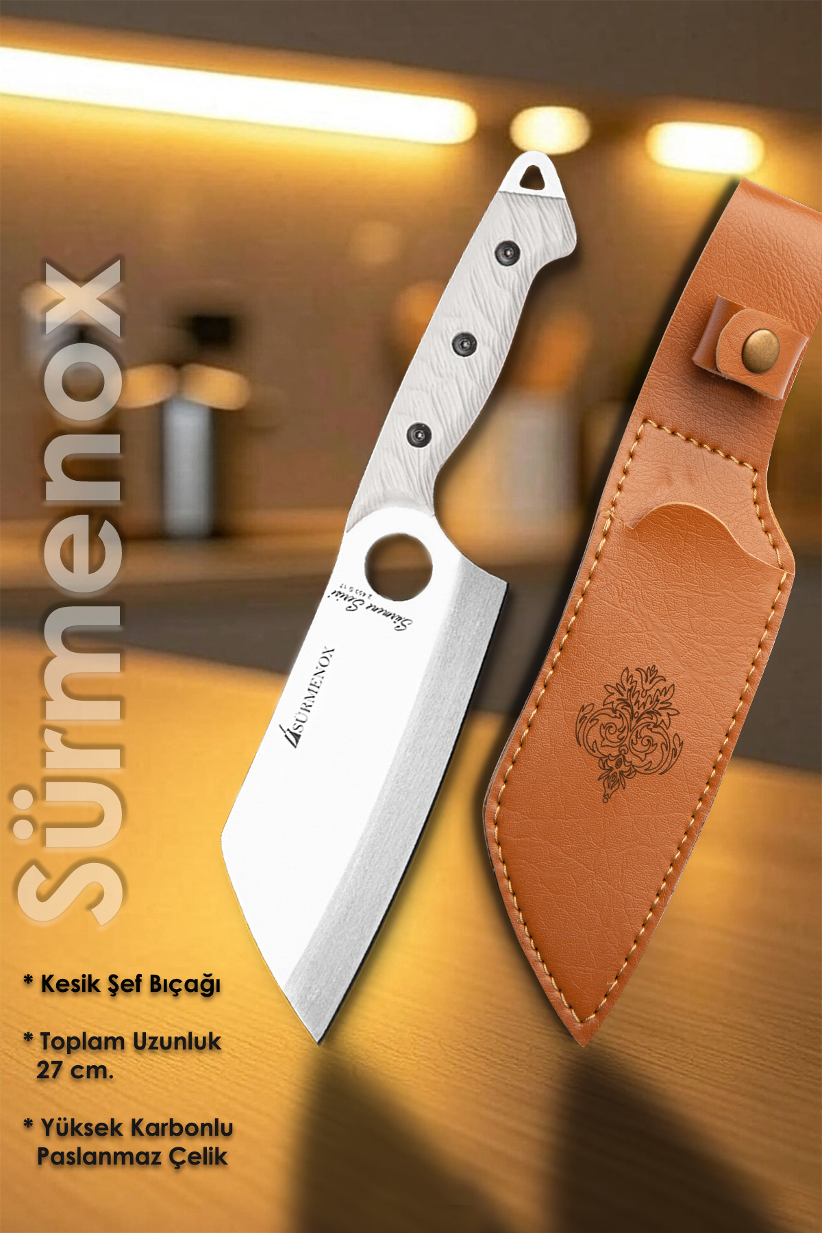 Sürmene Serisi K Şef Mutfak Şef Bıçağı Bıçak Kamp Bıçağı Deri Kılıflı Beyaz Verzalit Sap HDS-153 Sürmene Serisi K Şef Mutfak Şef Bıçağı Bıçak Kamp Bıçağı Deri Kılıflı Beyaz Verzalit Sap HDS-153 تک سایز