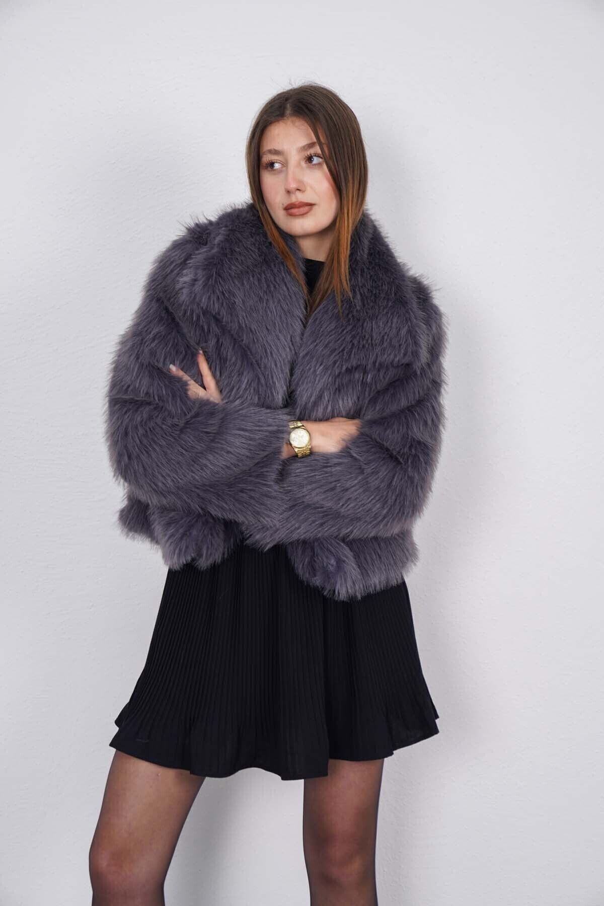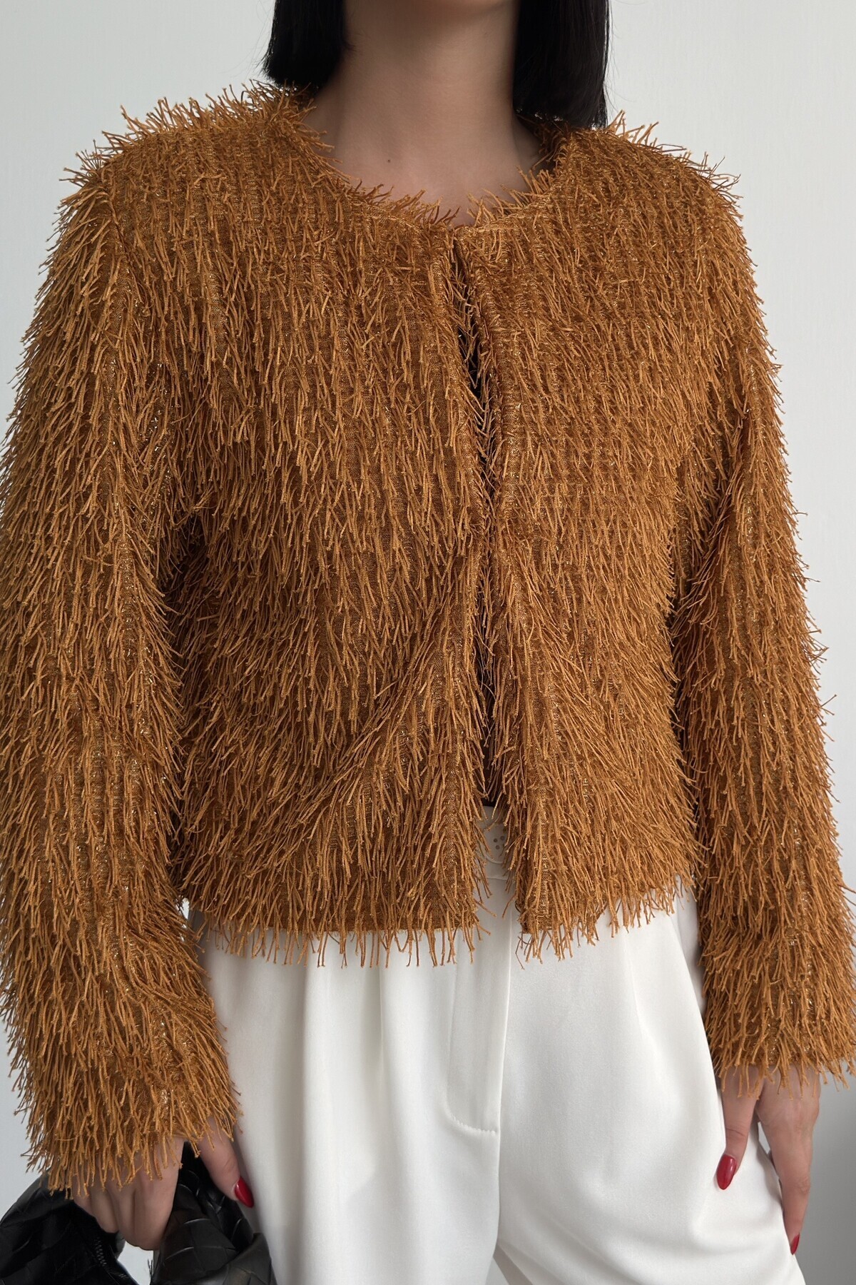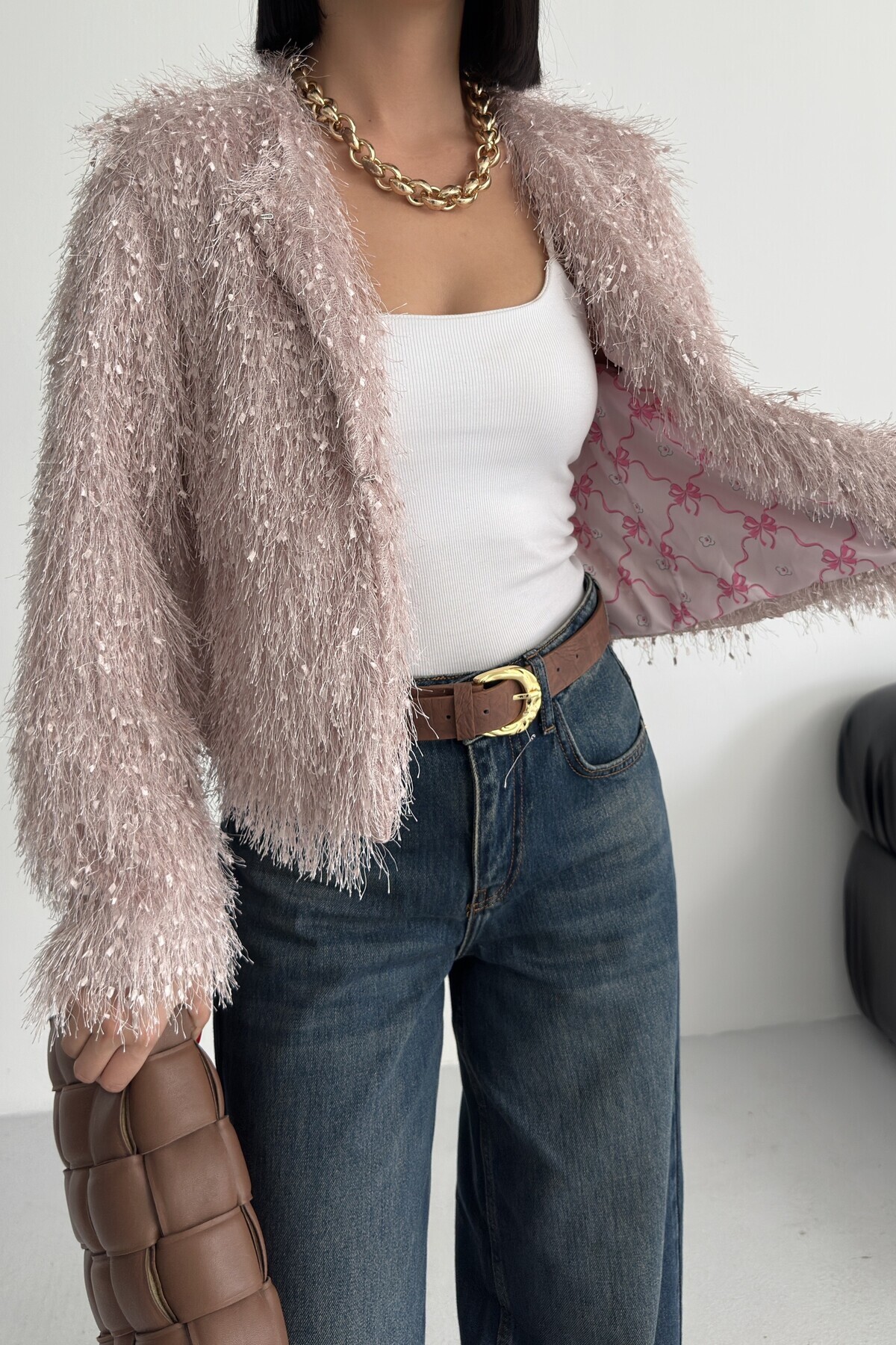 Yakasız İthal Püsküllü Pudra Kürk Mont Yakasız İthal Püsküllü Pudra Kürk Mont AMC-212Y L