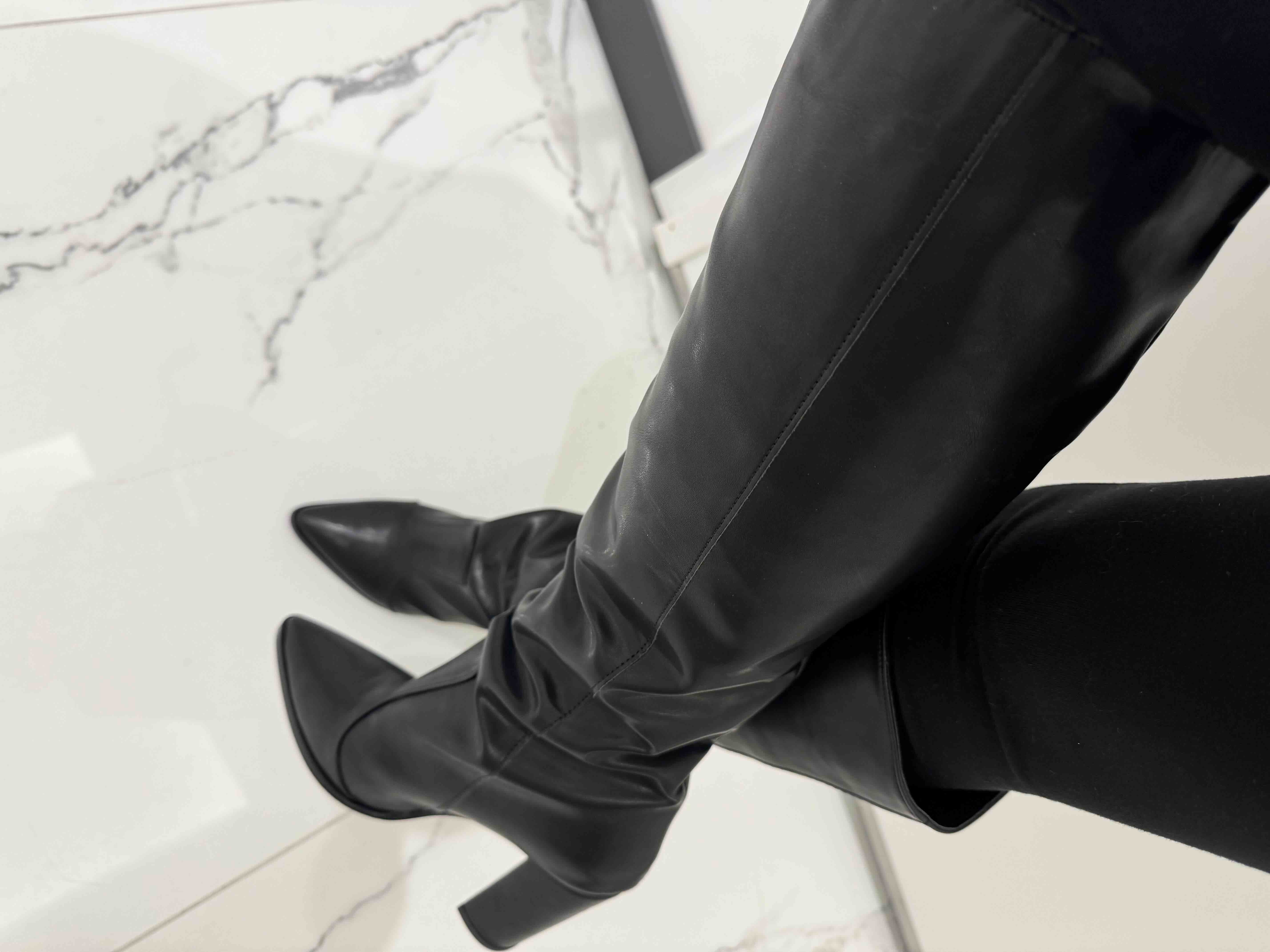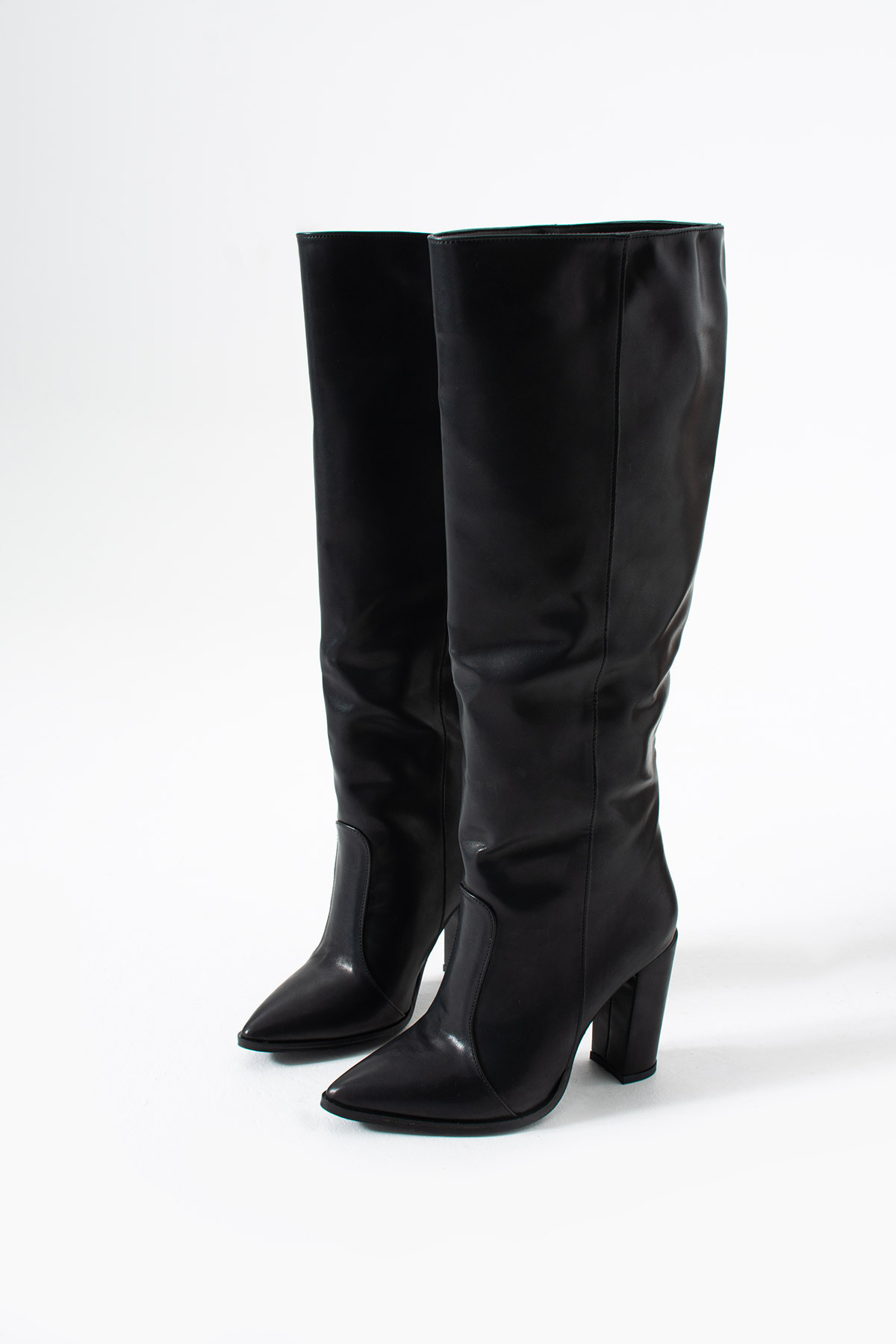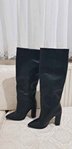 Kadın Siyah Cilt Kalın Topuk Diz Üstü Çizme Kadın Siyah Cilt Kalın Topuk Diz Üstü Çizme 25505 40