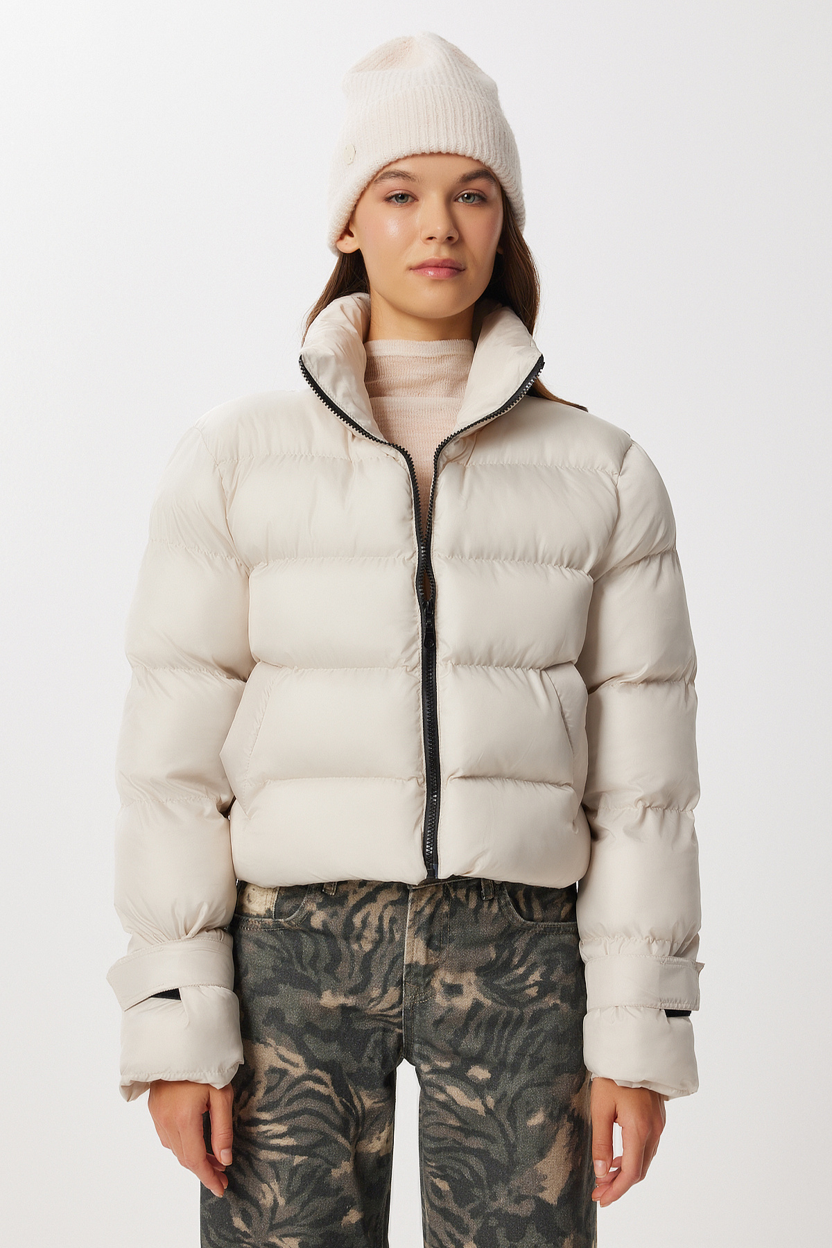 Dik Yaka Kısa Şişme Mont LZV0032 TAŞ Dik Yaka Kısa Şişme Mont LZV0032 TAŞ 42