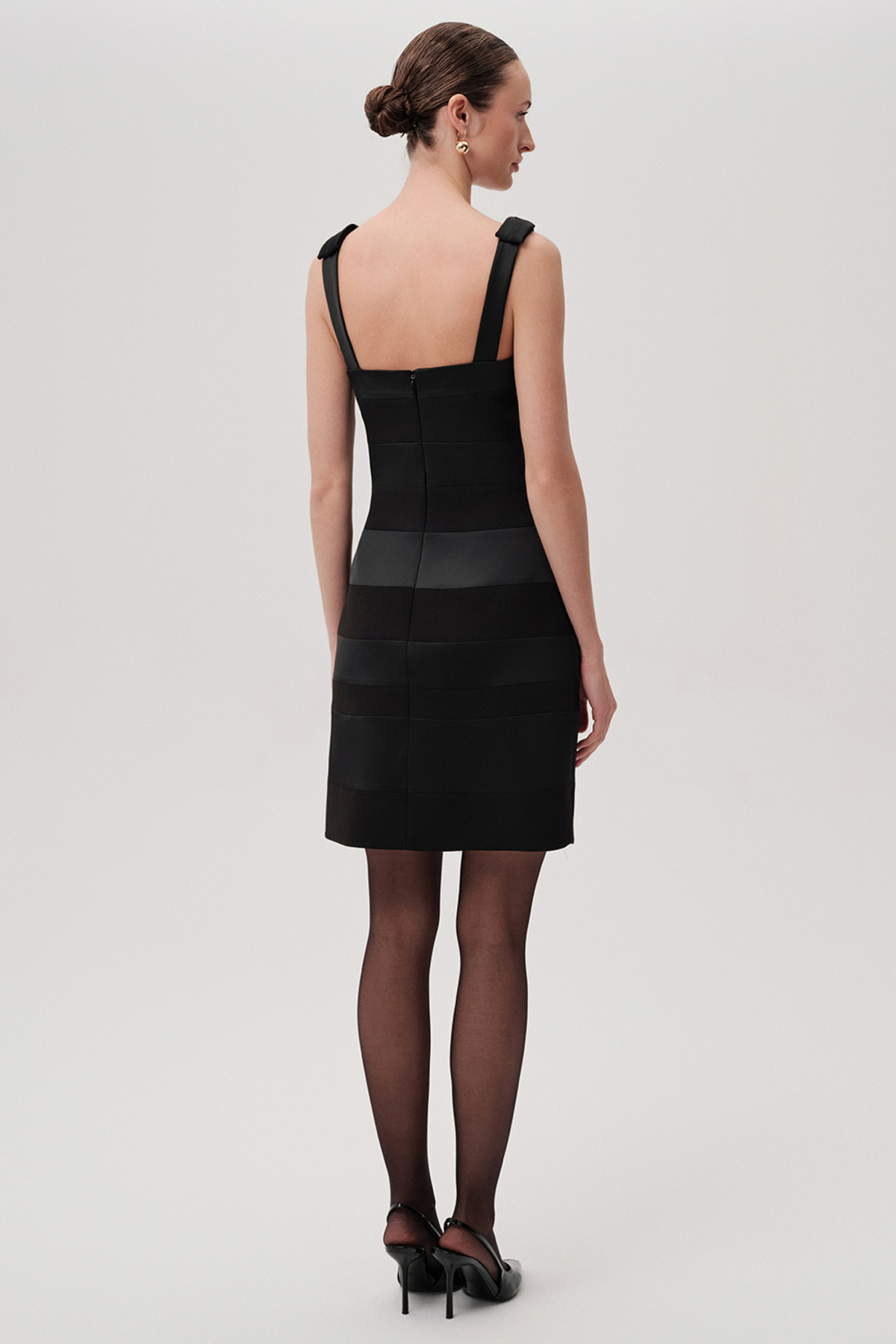 Kalın Askılı Slim Fit Saten Garnili Mini Siyah Elbise Kalın Askılı Slim Fit Saten Garnili Mini Siyah Elbise E25K05118158 44