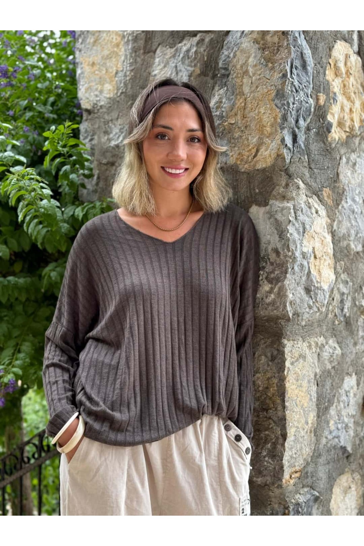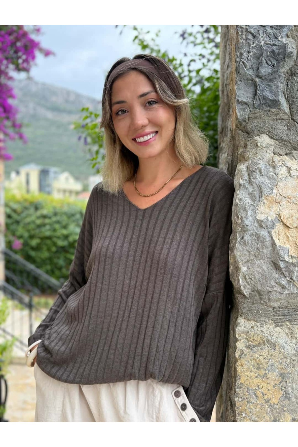 LS5510 İtalyan V Yaka Triko Bluz Kahve LS5510 İtalyan V Yaka Triko Bluz Kahve LS5510Kahve Standart