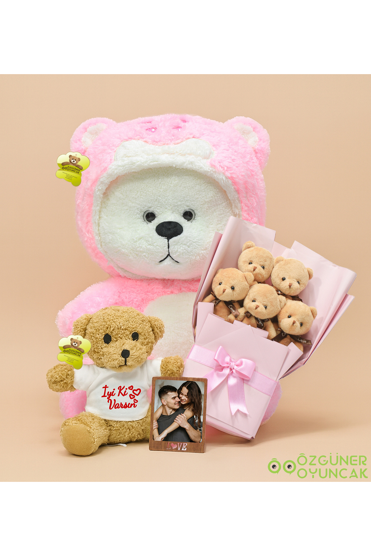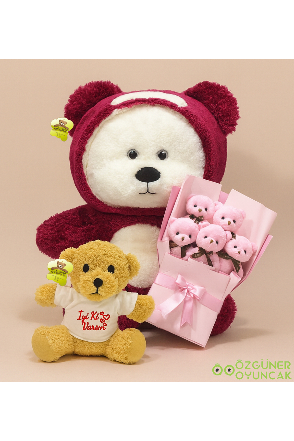 Sevgiliye Romantik Hediye Seti – Büyük 120 cm Peluş Ayı ve Peluş Ayıcık Buketi Sevgiliye Romantik Hediye Seti – Büyük 120 cm Peluş Ayı ve Peluş Ayıcık Buketi 63214788- تک سایز