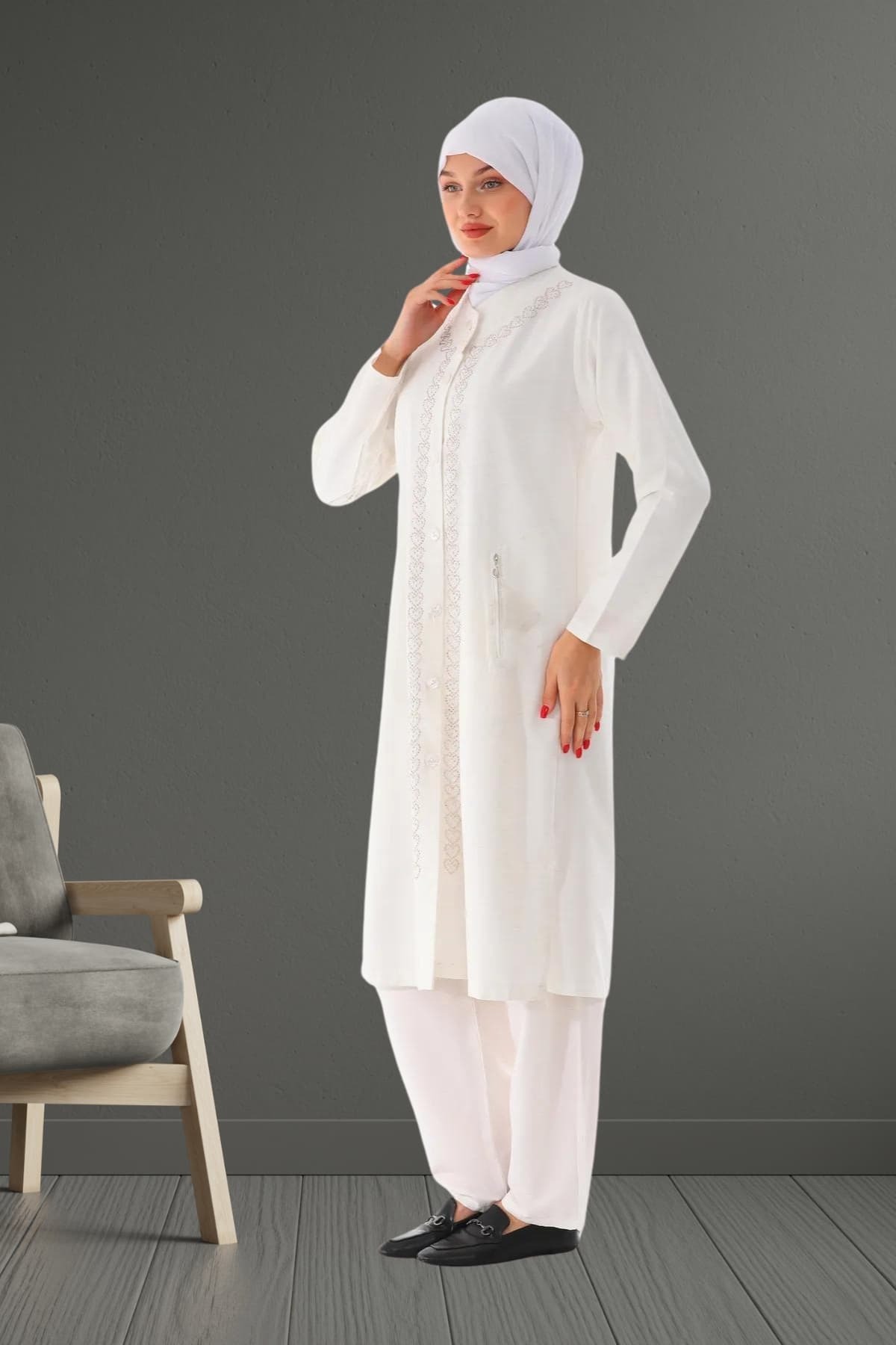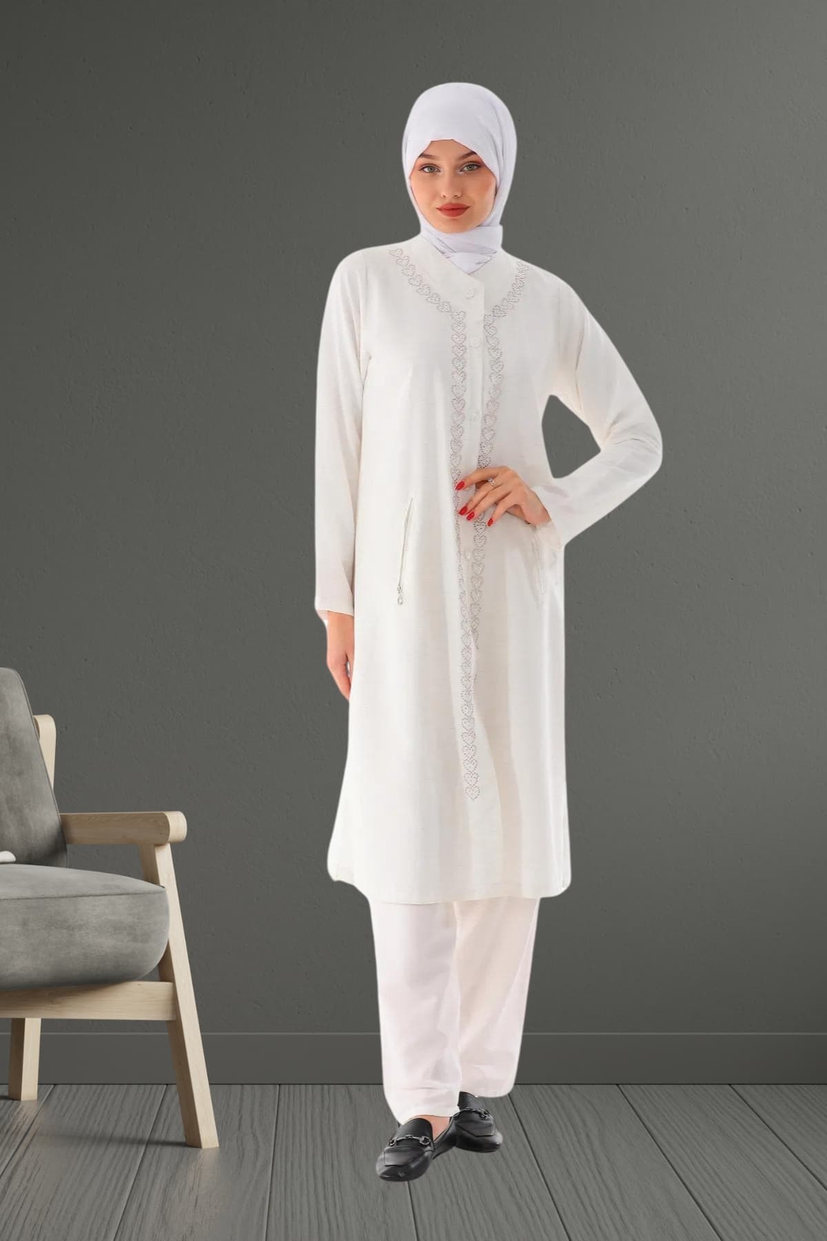 Kadın Hac Ve Umre Kıyafeti Kalpli Desen Pamuk Keten Taş işlemeli Pantolonlu Takım Kadın Hac Ve Umre Kıyafeti Kalpli Desen Pamuk Keten Taş işlemeli Pantolonlu Takım TEEL0402 52