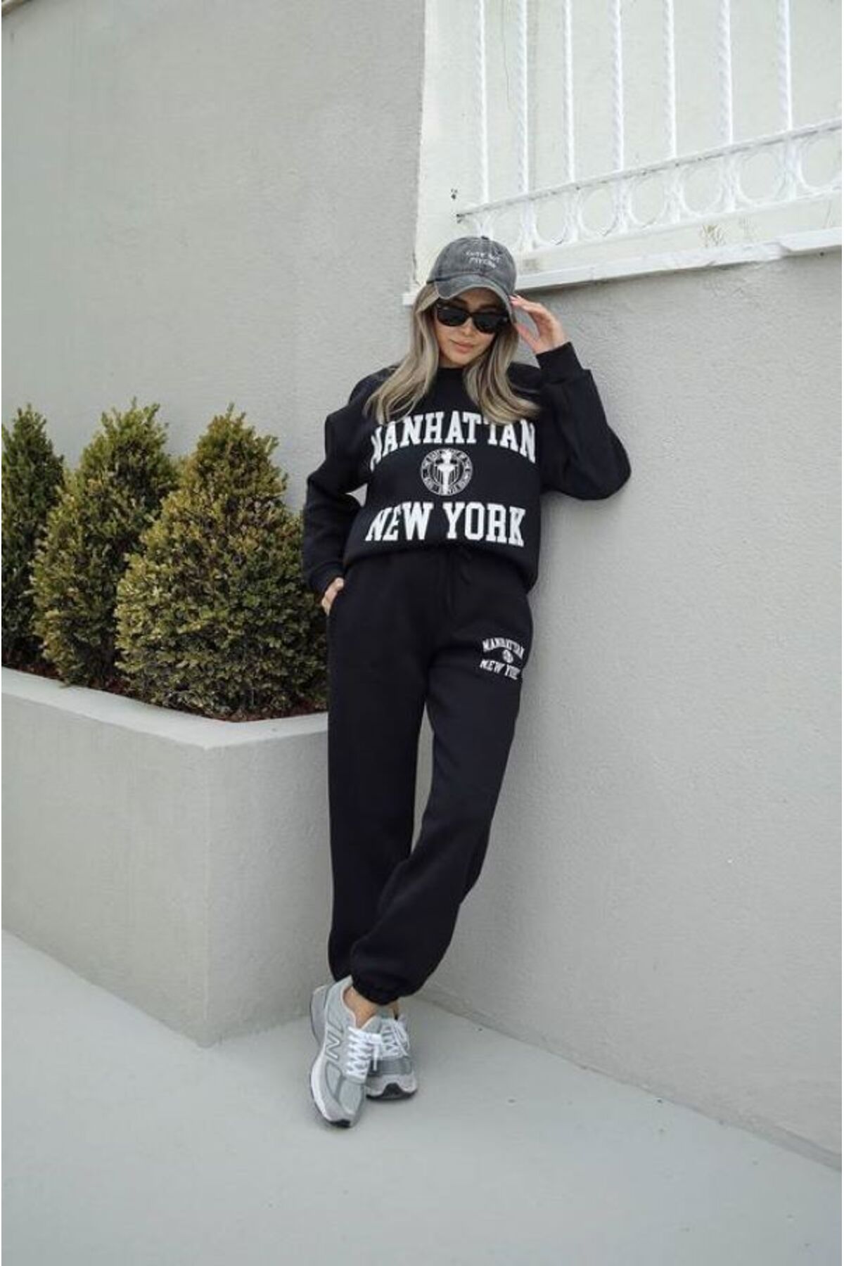 Eşofman Takımı Sweatshirt Jogger - Oversize Şardonlu Newyork dik yazı baskılı Bisikletyaka Eşofman Takımı Sweatshirt Jogger - Oversize Şardonlu Newyork dik yazı baskılı Bisikletyaka newyrkdk XL