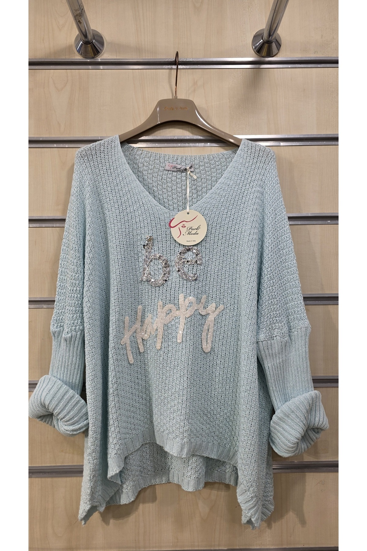 İtalyan Merserize Kazak Yazı Desenli İtalyan Merserize Kazak Yazı Desenli 8203 Mutlu Ol Mesajlı Merserize Kazak Standart