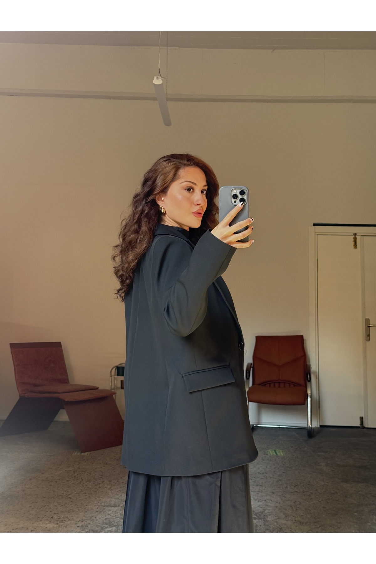 İçi Saten, Çizgi Astarlı Blazer Ceket İçi Saten, Çizgi Astarlı Blazer Ceket SKU0000008764320 XL