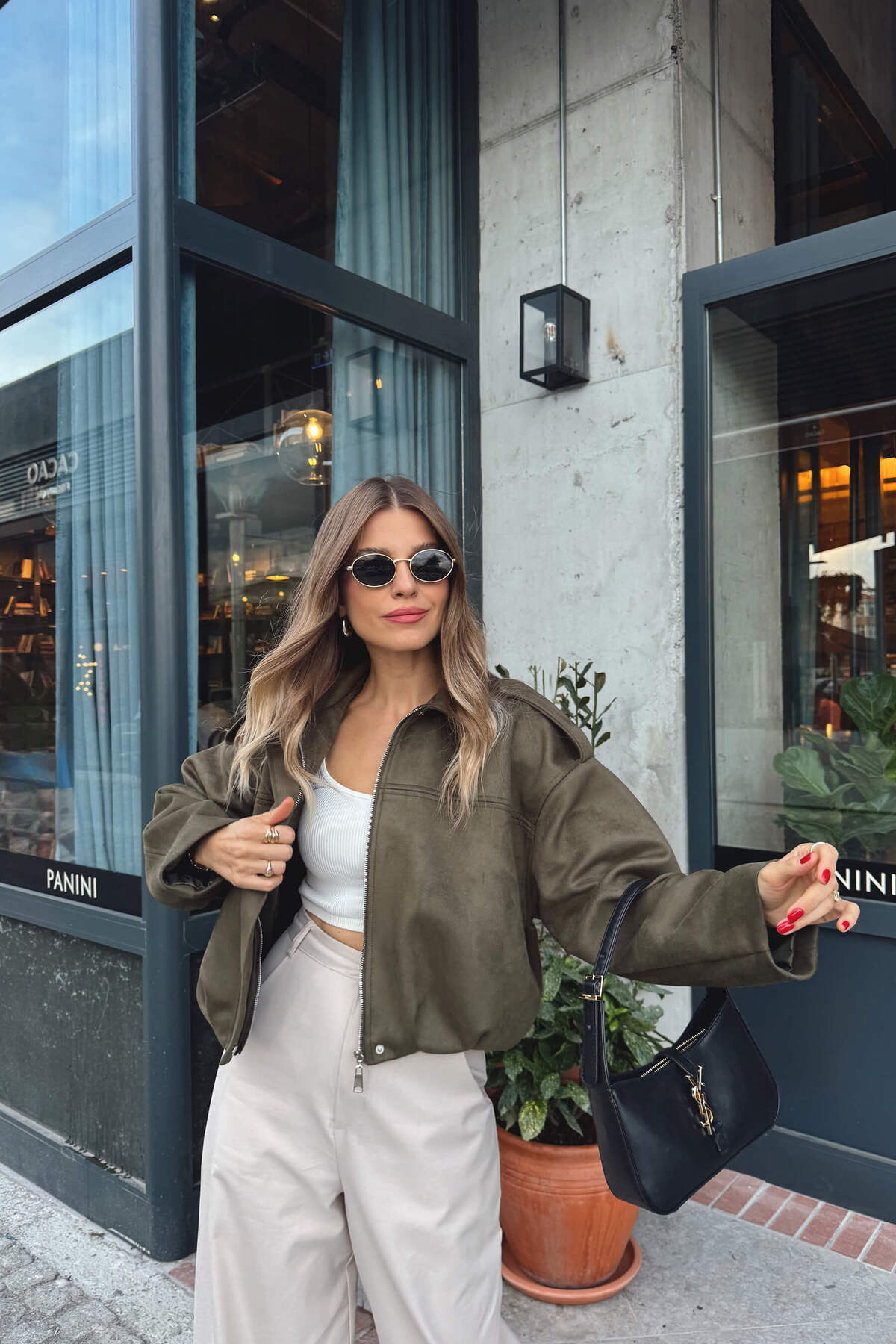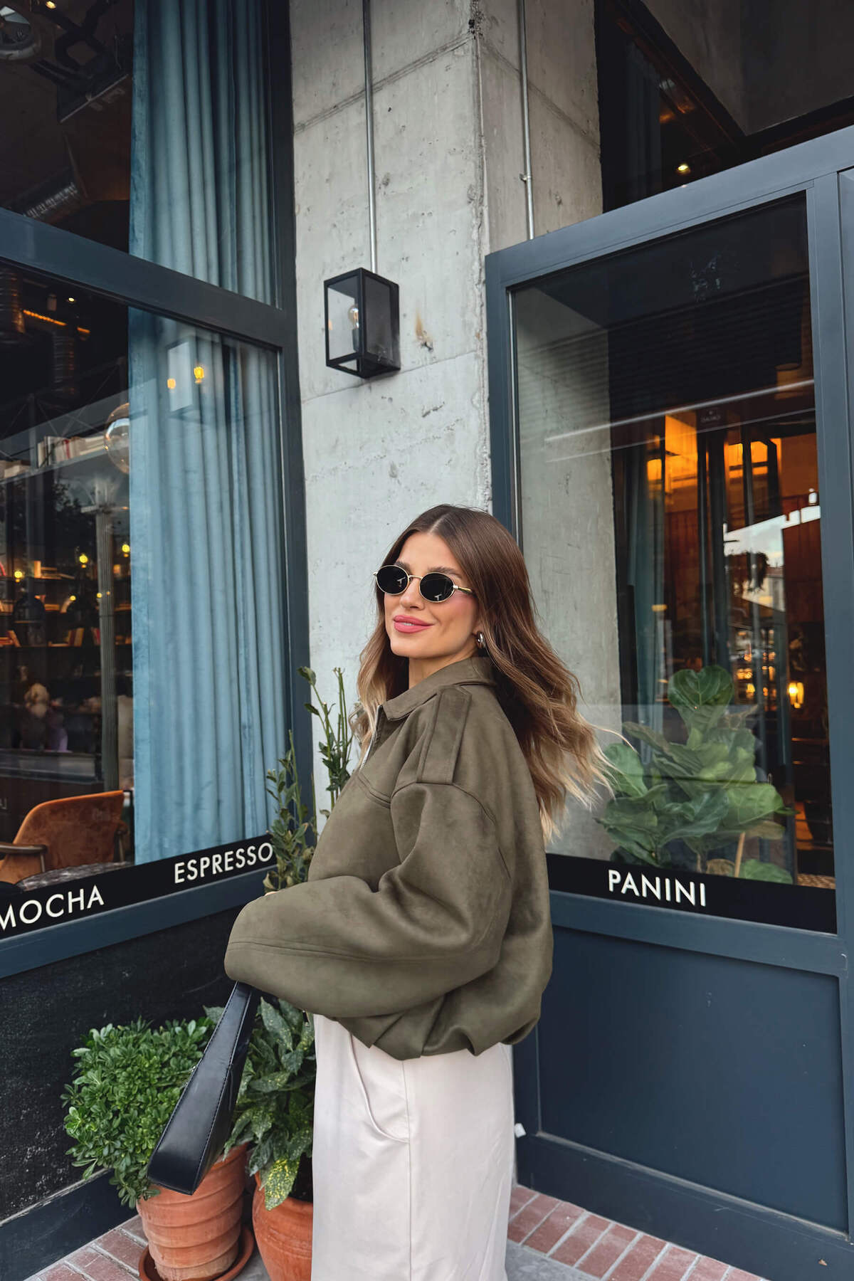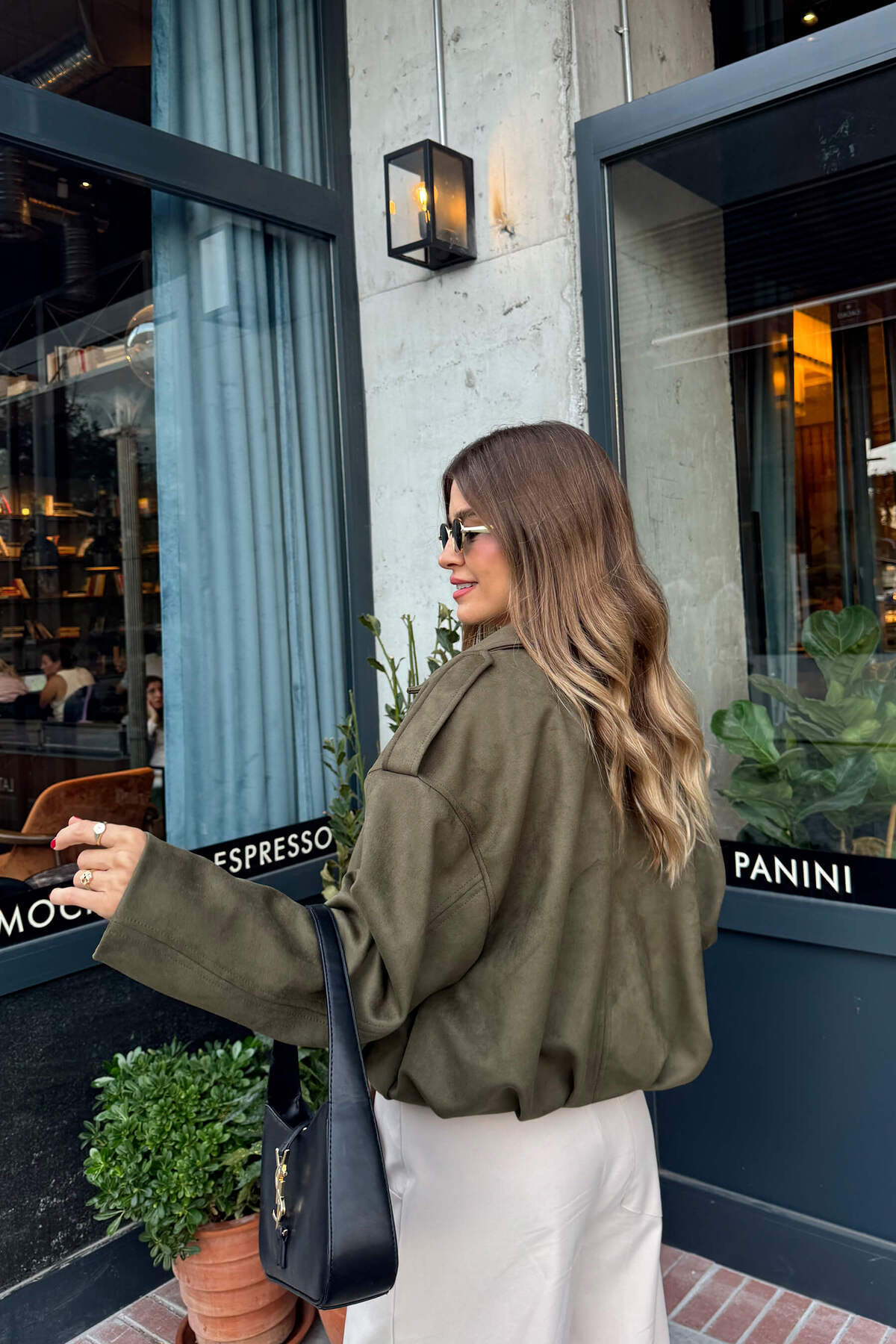 Haki Apolet Detaylı Astarlı Süet Ceket Haki Apolet Detaylı Astarlı Süet Ceket CKT1053 L