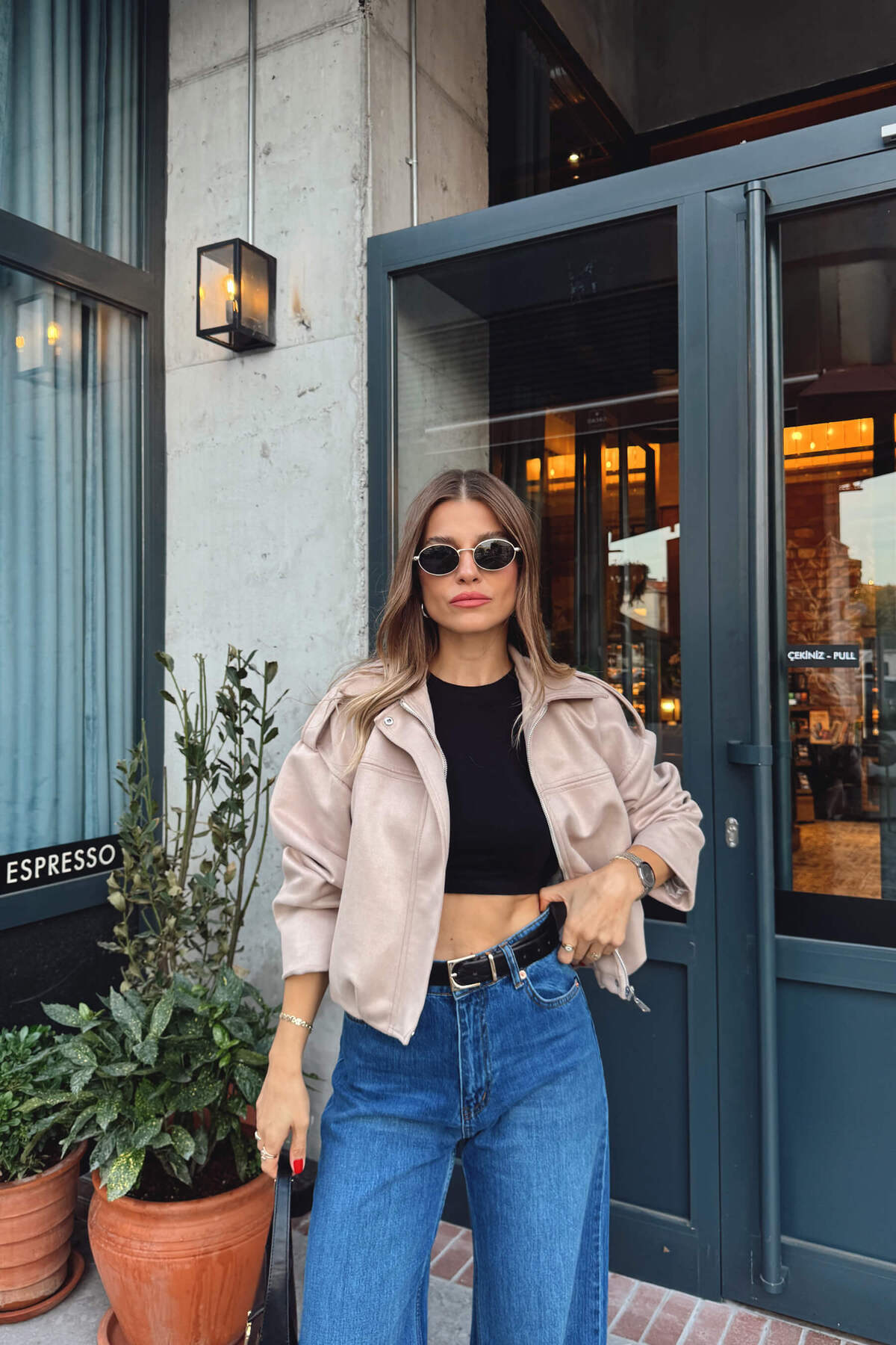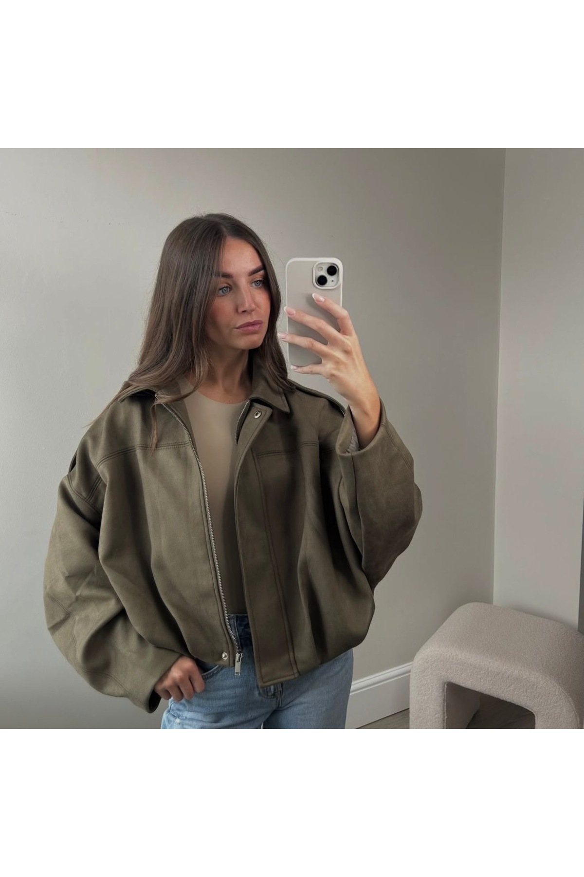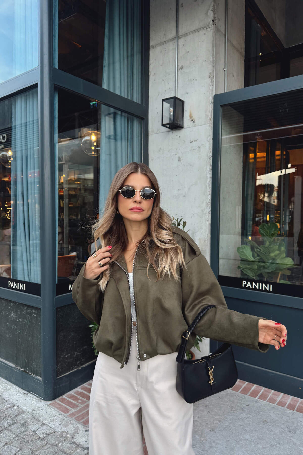 Haki Apolet Detaylı Astarlı Süet Ceket Haki Apolet Detaylı Astarlı Süet Ceket CKT1053 L