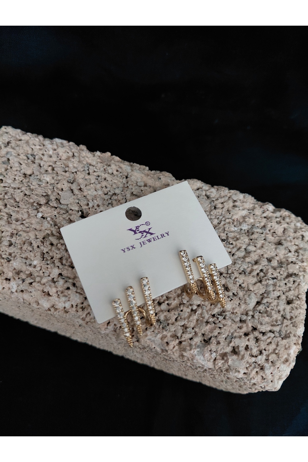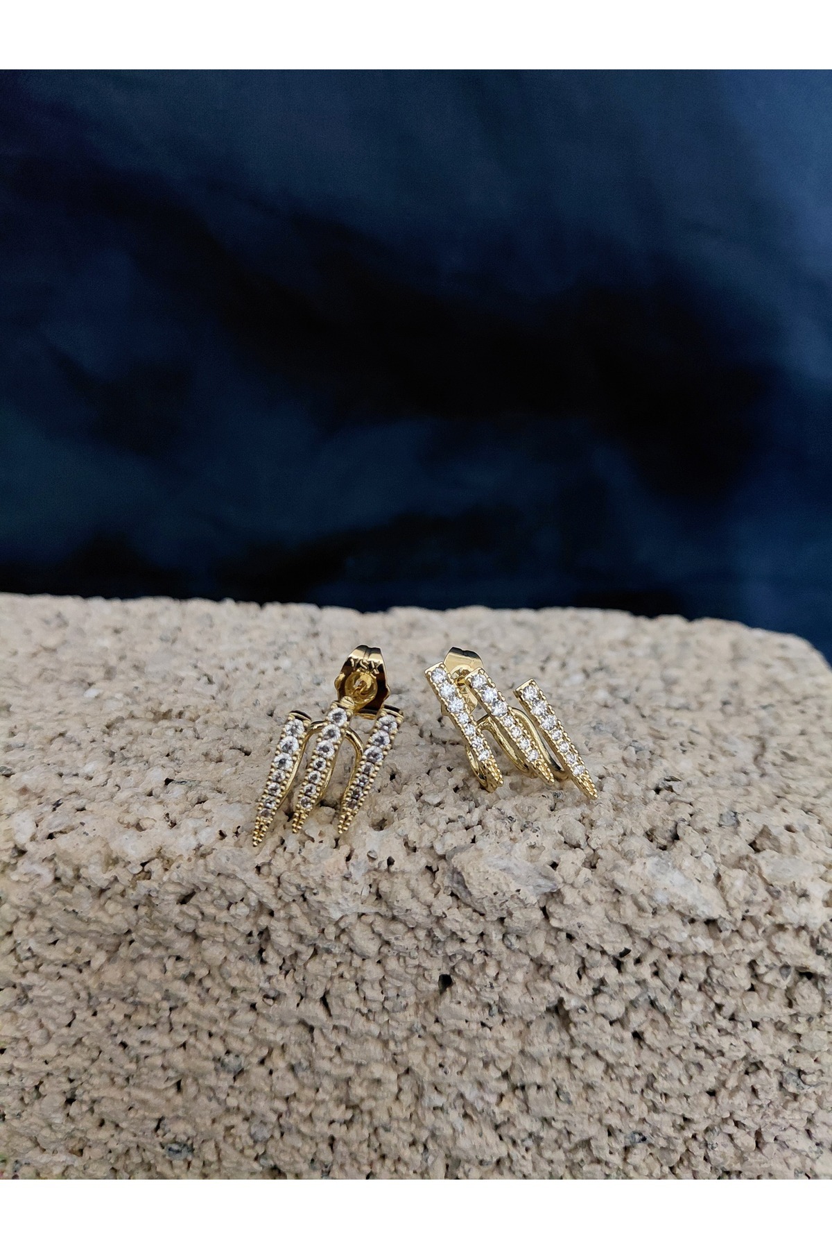 Zirkon Taşlı Çoklu Görünümlü Tasarım Küpe Zirkon Taşlı Çoklu Görünümlü Tasarım Küpe Lavb117 تک سایز