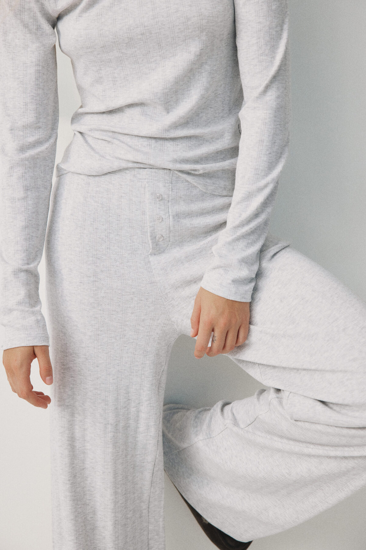 Delik Desenli Jarse Pijama Takımı Delik Desenli Jarse Pijama Takımı 1308285 2XS