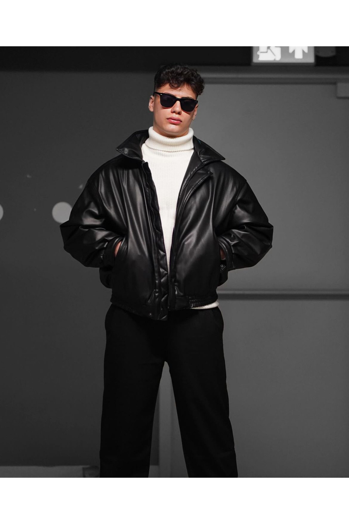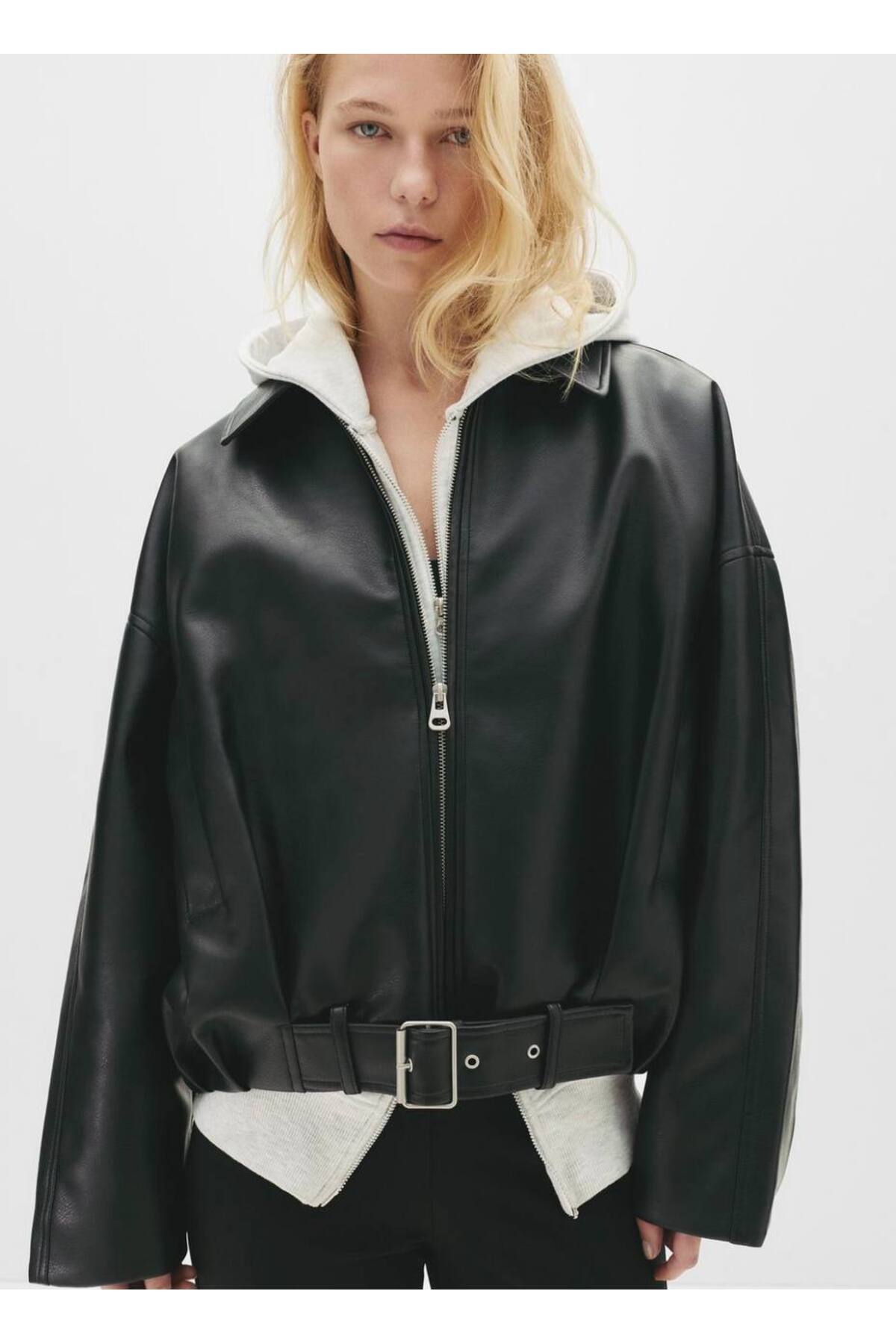 Premium Tren Kemer Detaylı Deri Ceket Premium Tren Kemer Detaylı Deri Ceket kemerdetaykadın1 L