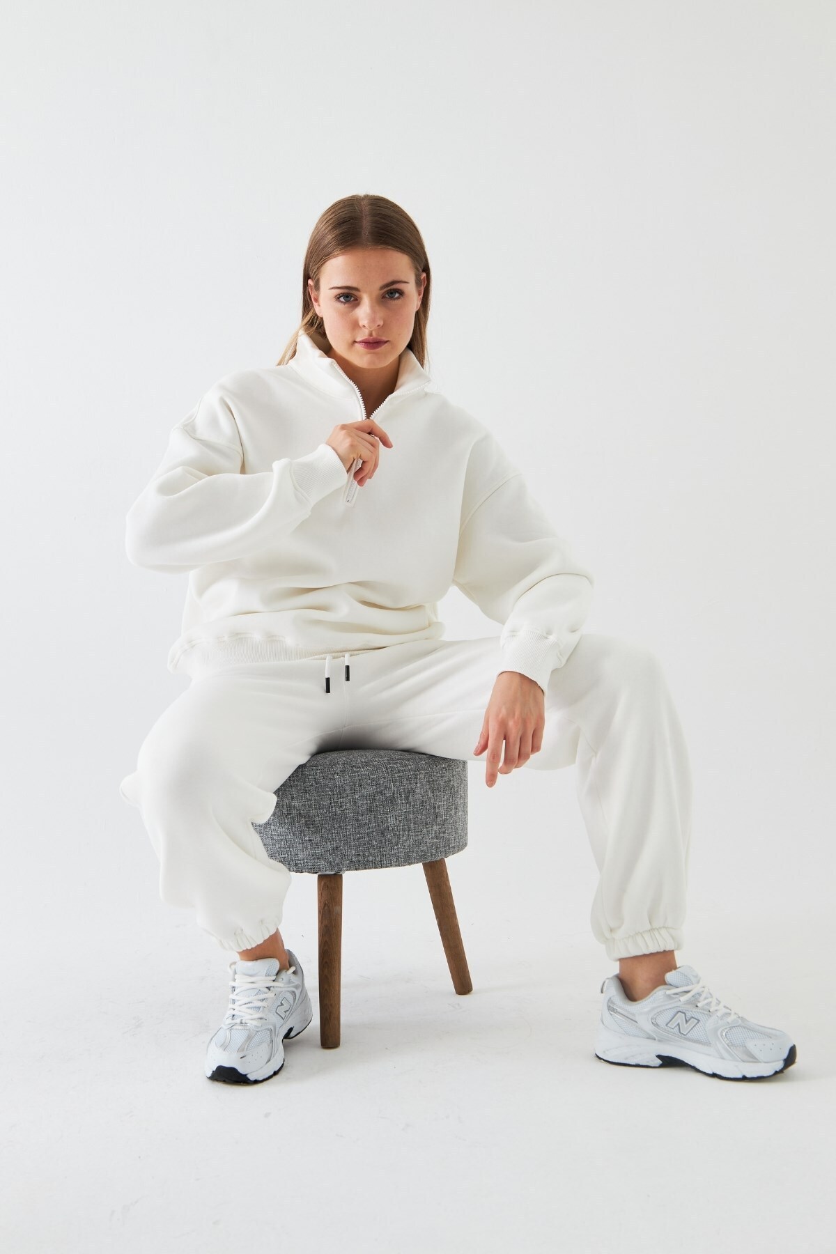 Unisex Oversize Eşofman Takımı Basic Beyaz – Fermuarlı Dik Yaka, Lastikli Paça, 3 İplik Şardonlu Pol Unisex Oversize Eşofman Takımı Basic Beyaz – Fermuarlı Dik Yaka, Lastikli Paça, 3 İplik Şardonlu Pol PRA-13144445-746022 2XL