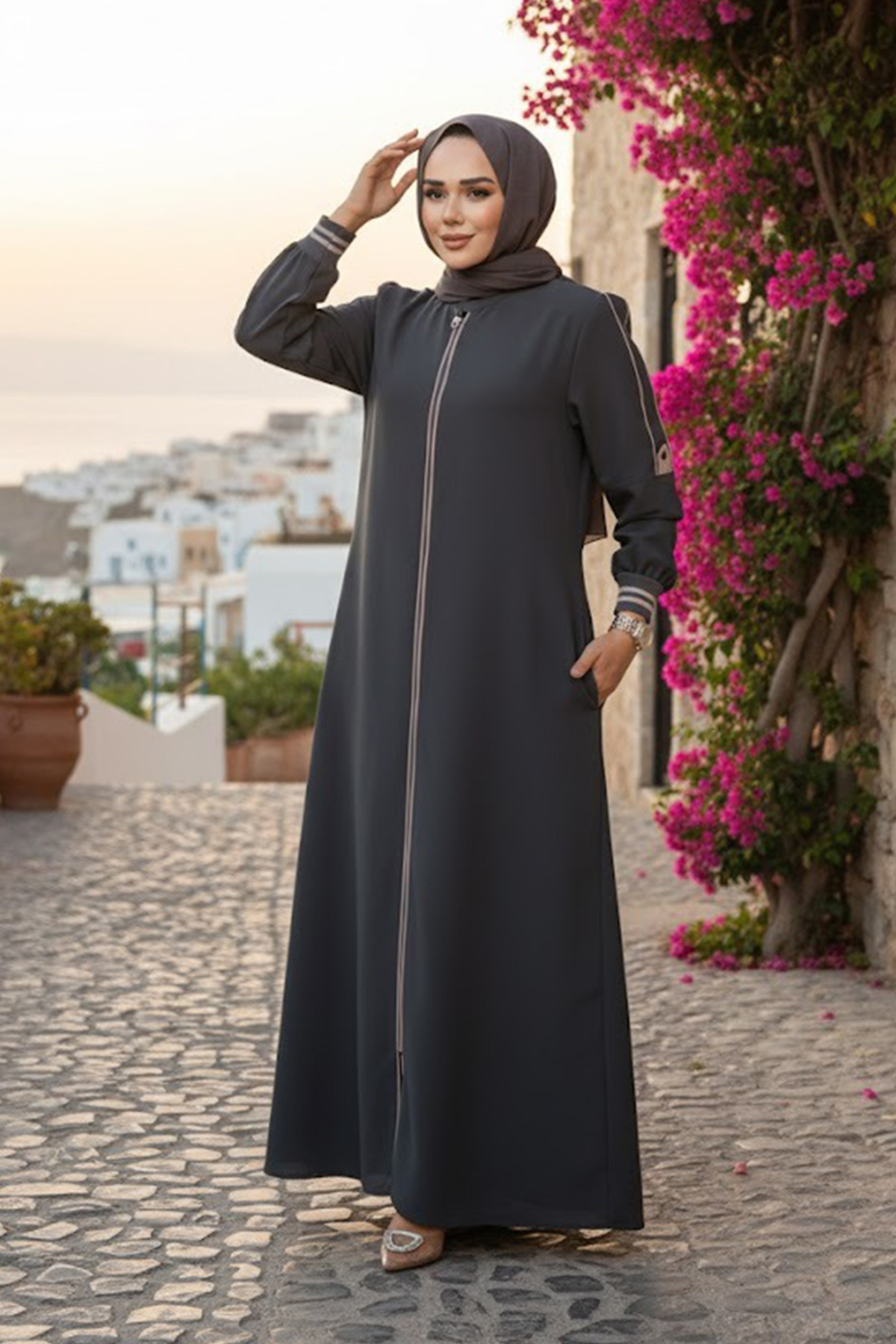 Düğmeli Gri Tesettür Ferace 26441GR Düğmeli Gri Tesettür Ferace 26441GR GUZ-26441 50