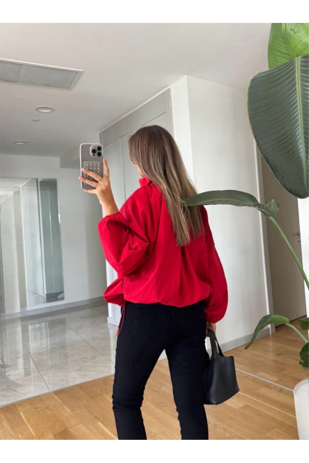 Kadın Kırmızı Dik Yaka Altı Lastikli Ceket Kadın Kırmızı Dik Yaka Altı Lastikli Ceket FME25-86 Standart