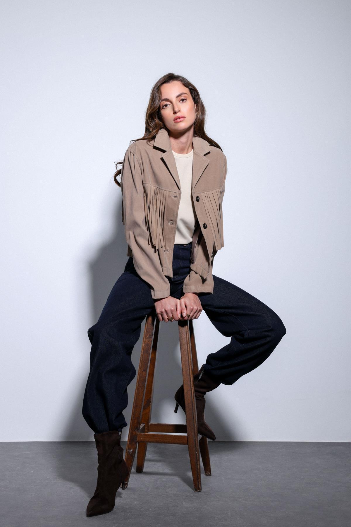 Bej Püskül Detaylı Süet Kadın Ceket Bej Püskül Detaylı Süet Kadın Ceket BA25Y425 L